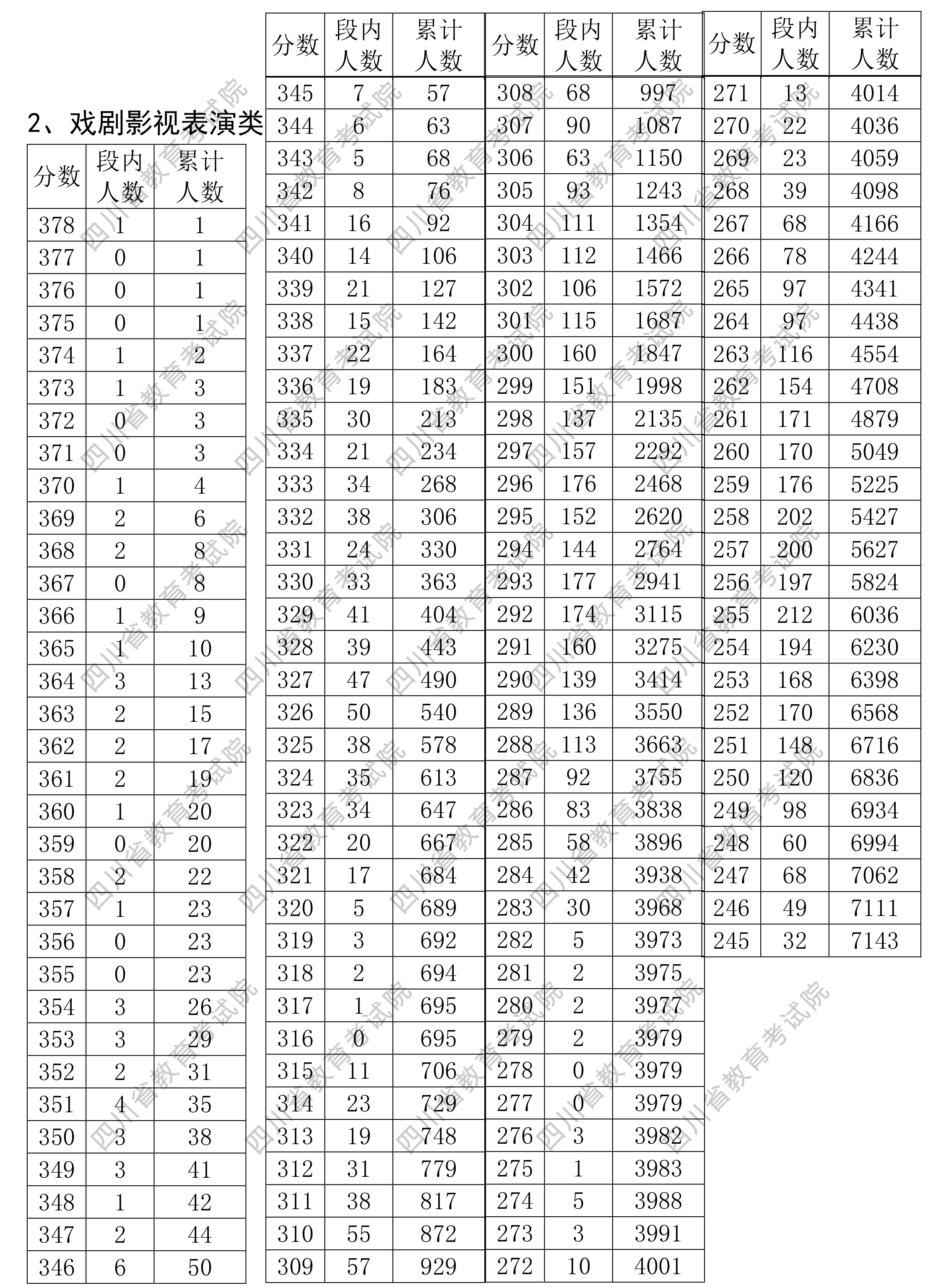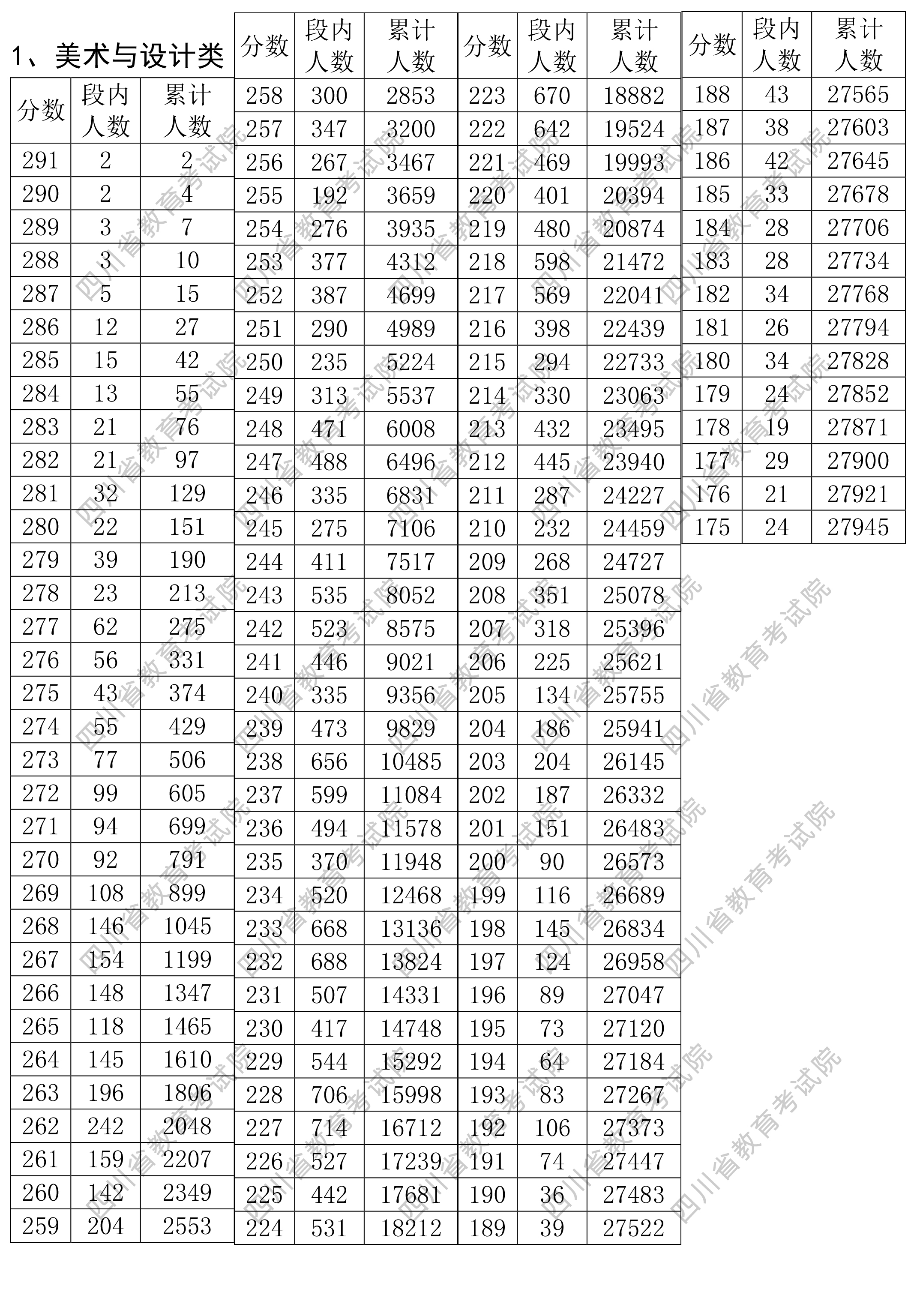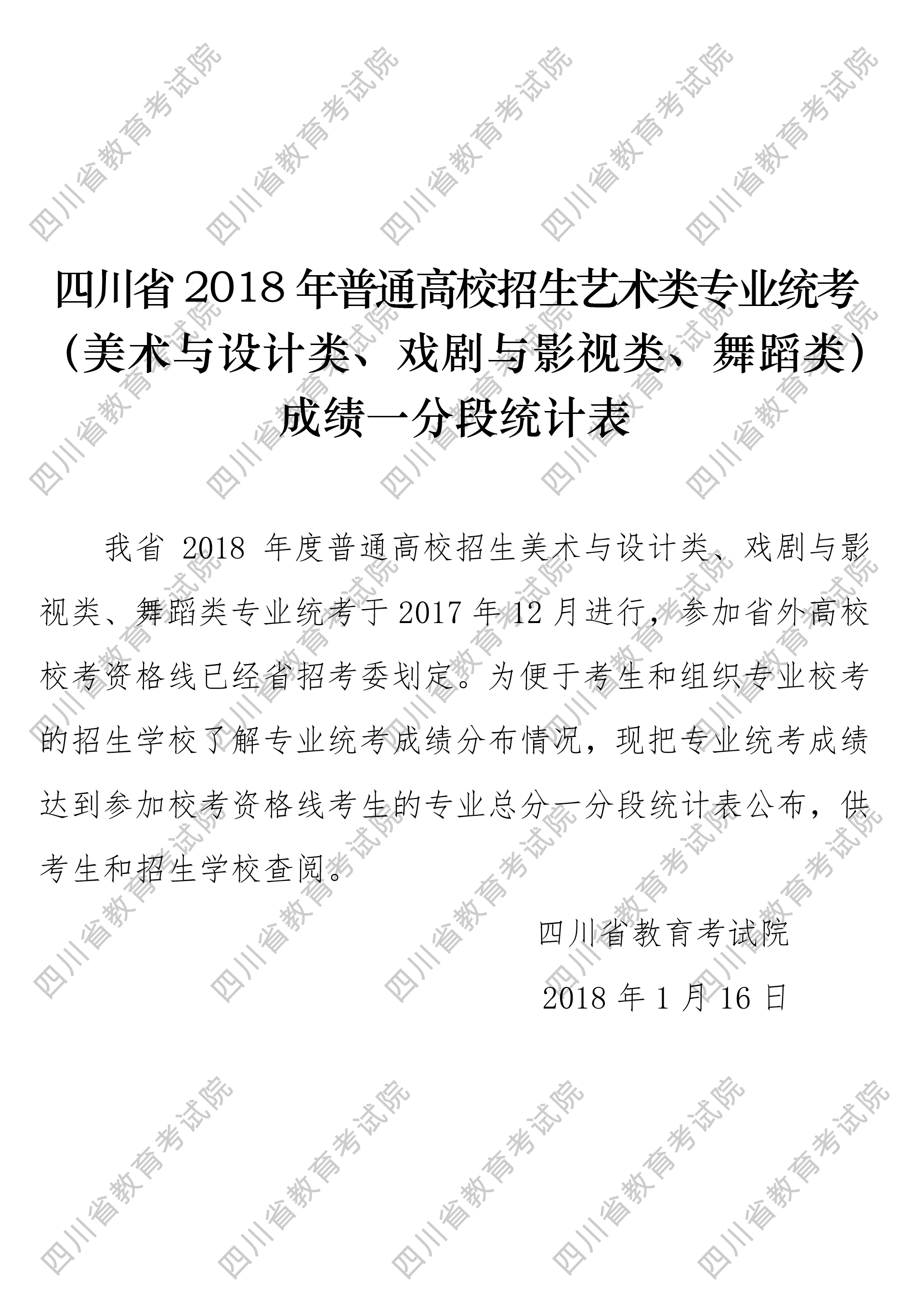 四川省2018年普通高校招生艺术类专业统考(美术与设计类、戏剧与影视类、舞蹈类)成绩一分段统计表