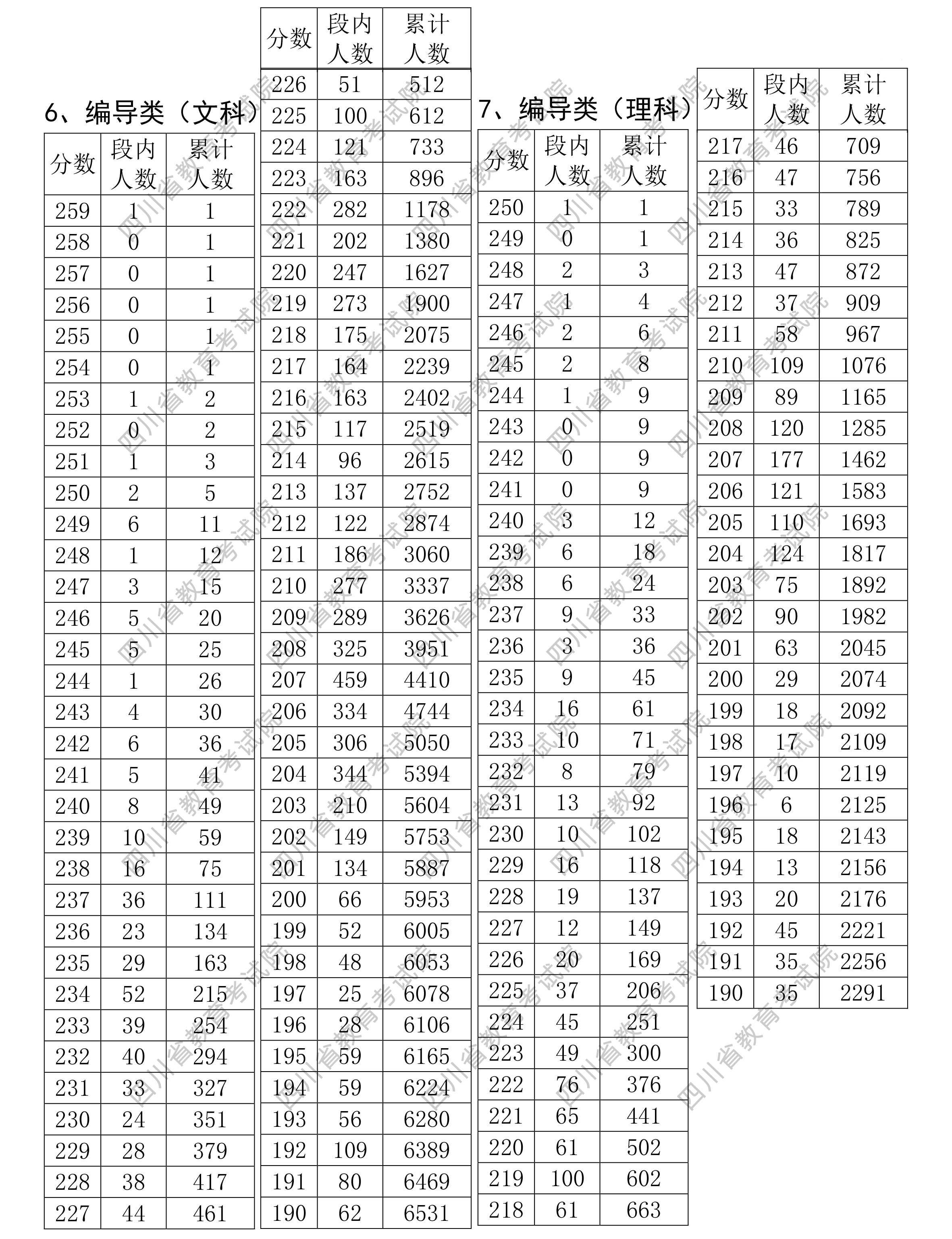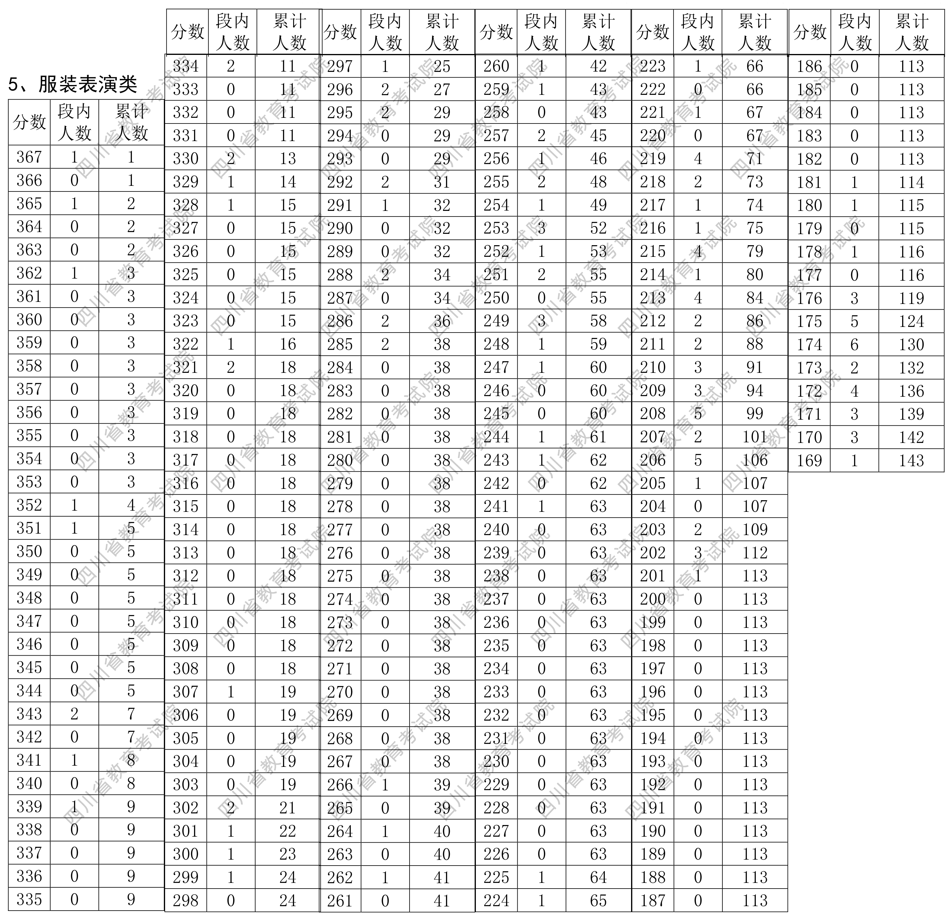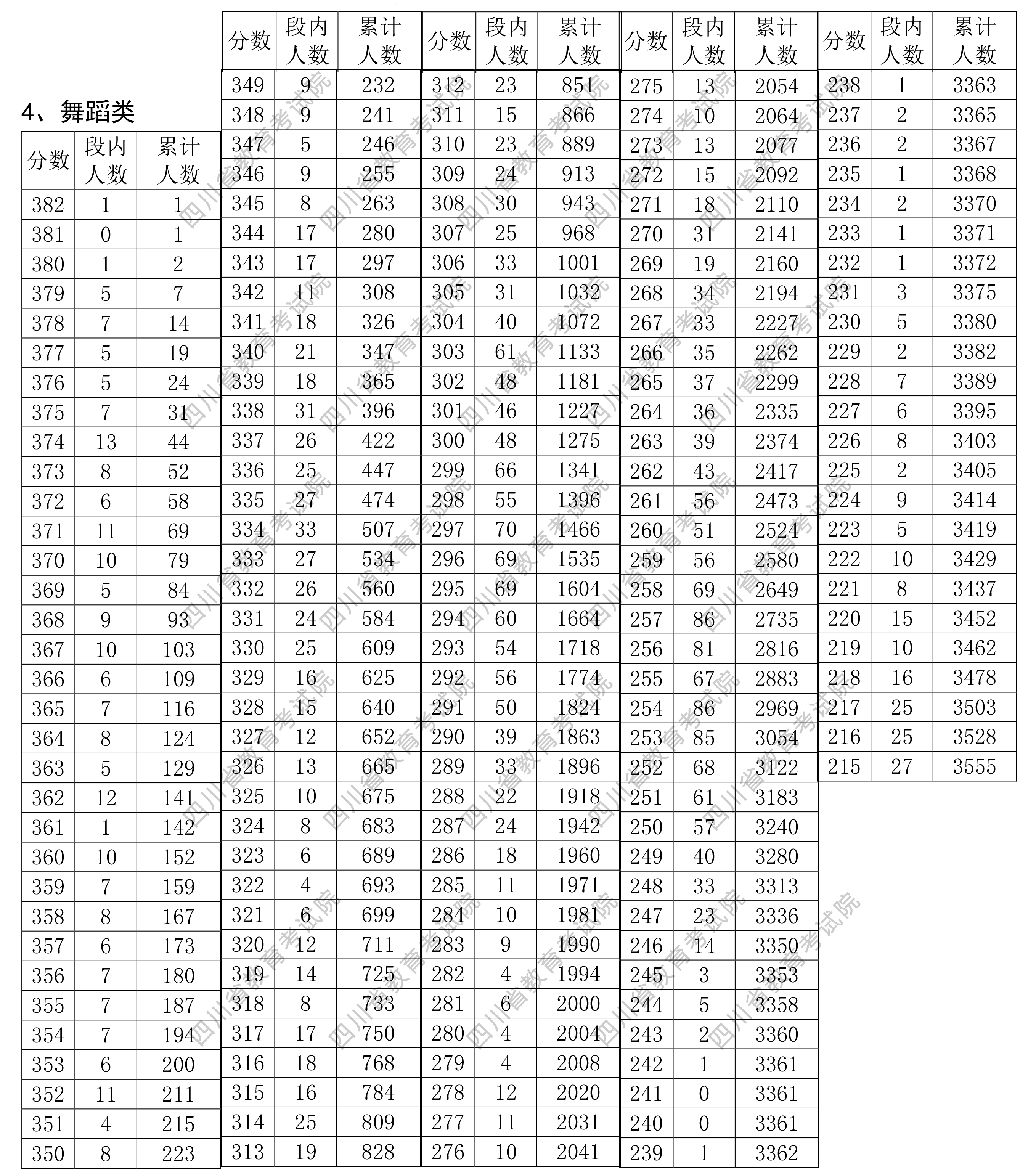 四川省2024年普通高校招生本科艺术类综合成绩、体育类专业成绩分段统计表