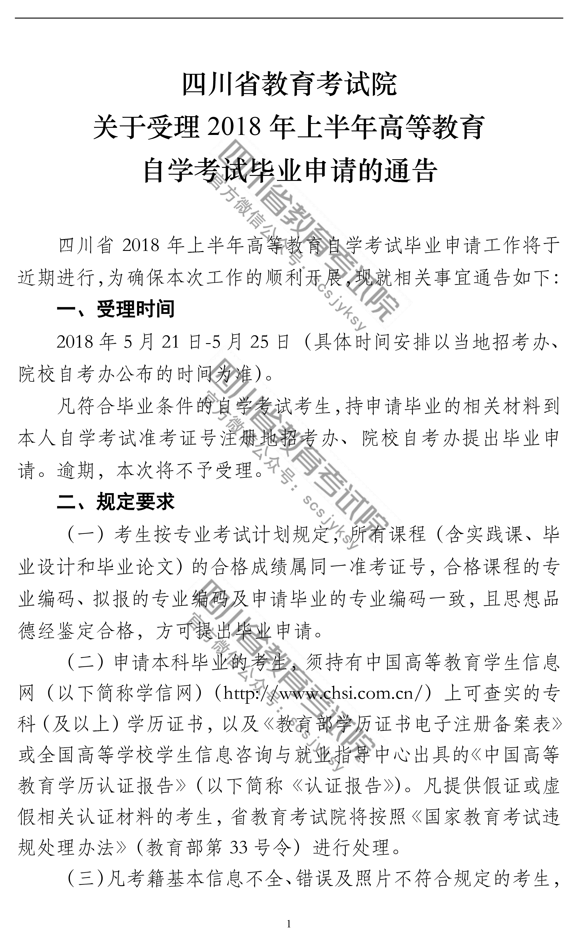 关于受理2018年上半年高等教育自学考试毕业申请的通告