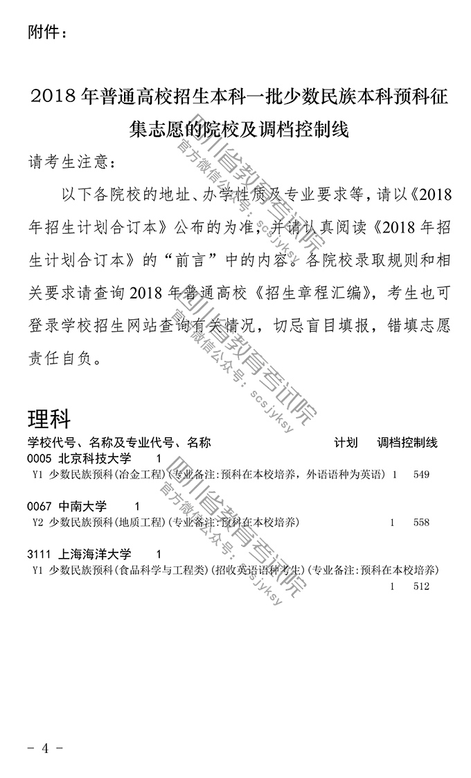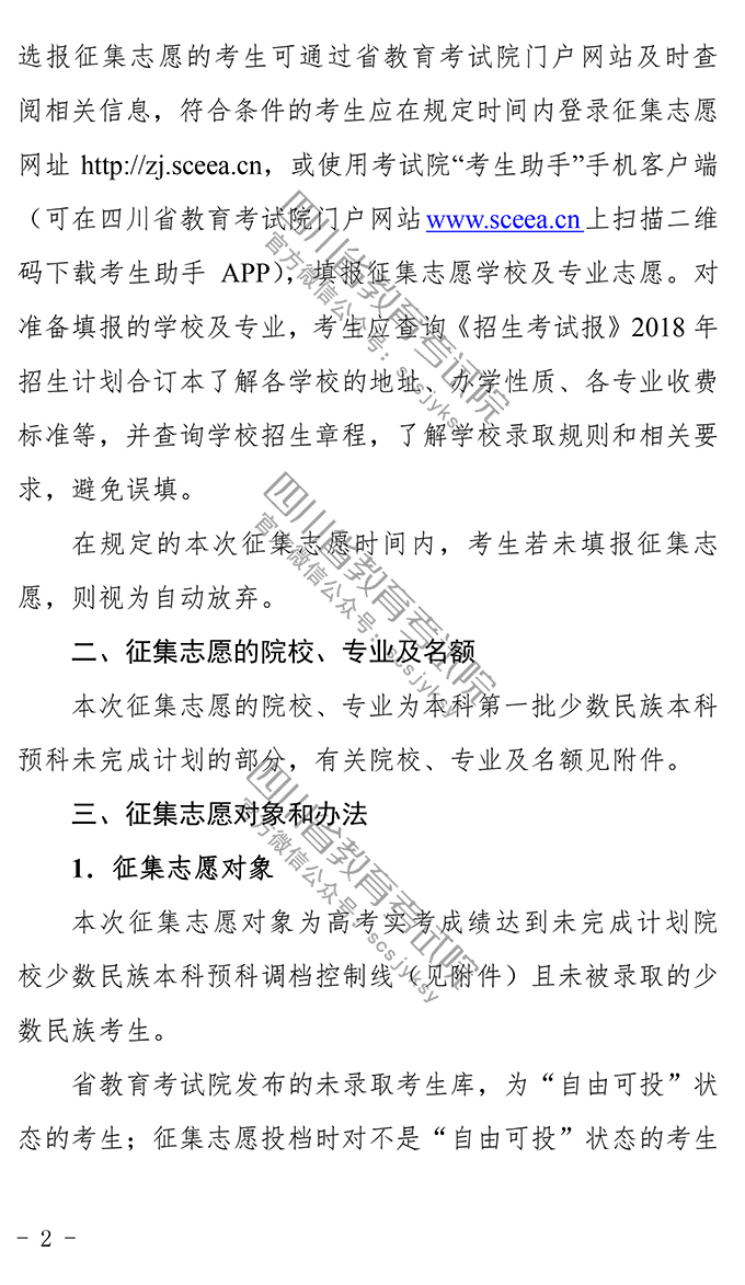 关于普通高校本科第一批少数民族本科预科录取未完成计划院校征集志愿的通知