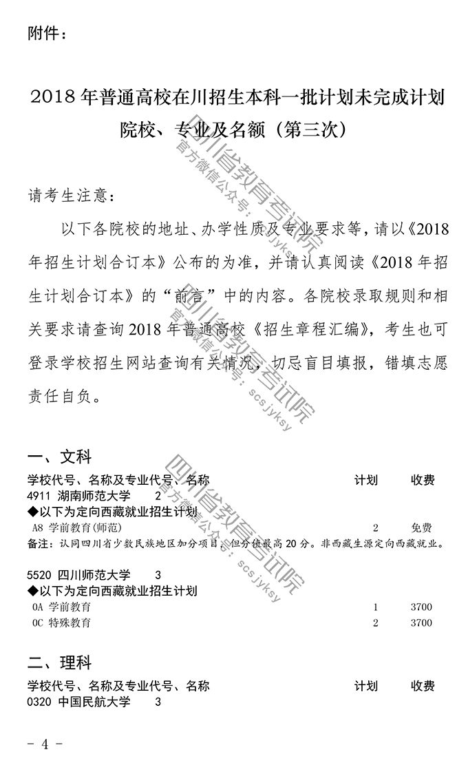 关于普通高校本科第一批录取未完成计划院校第三次征集志愿的通知