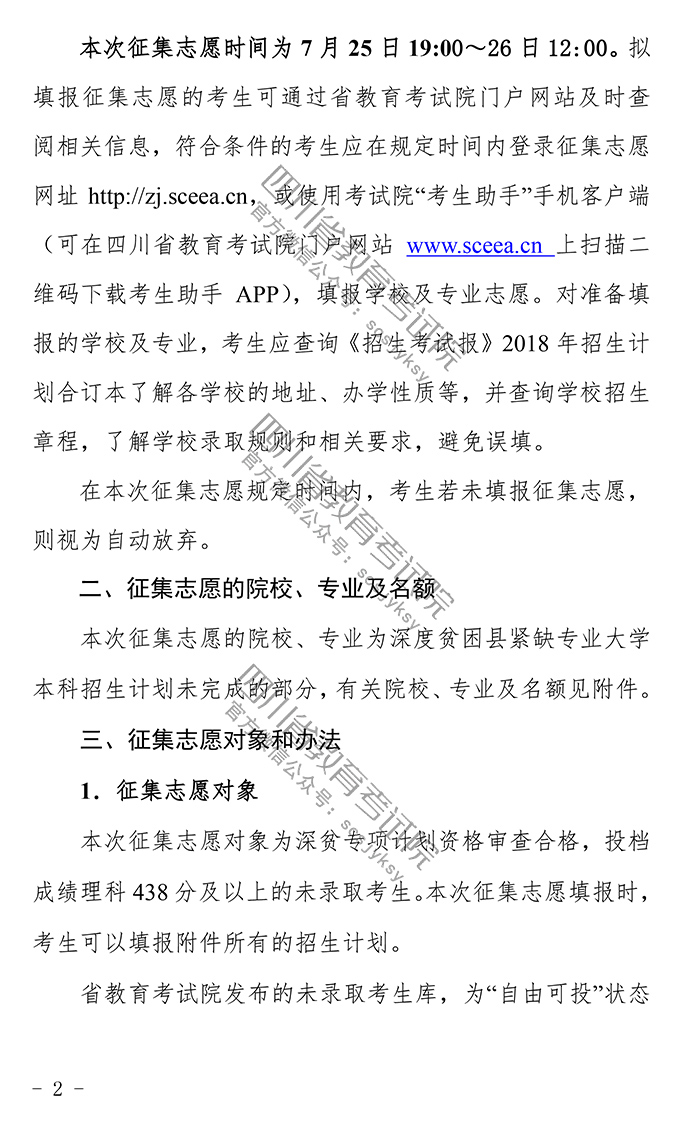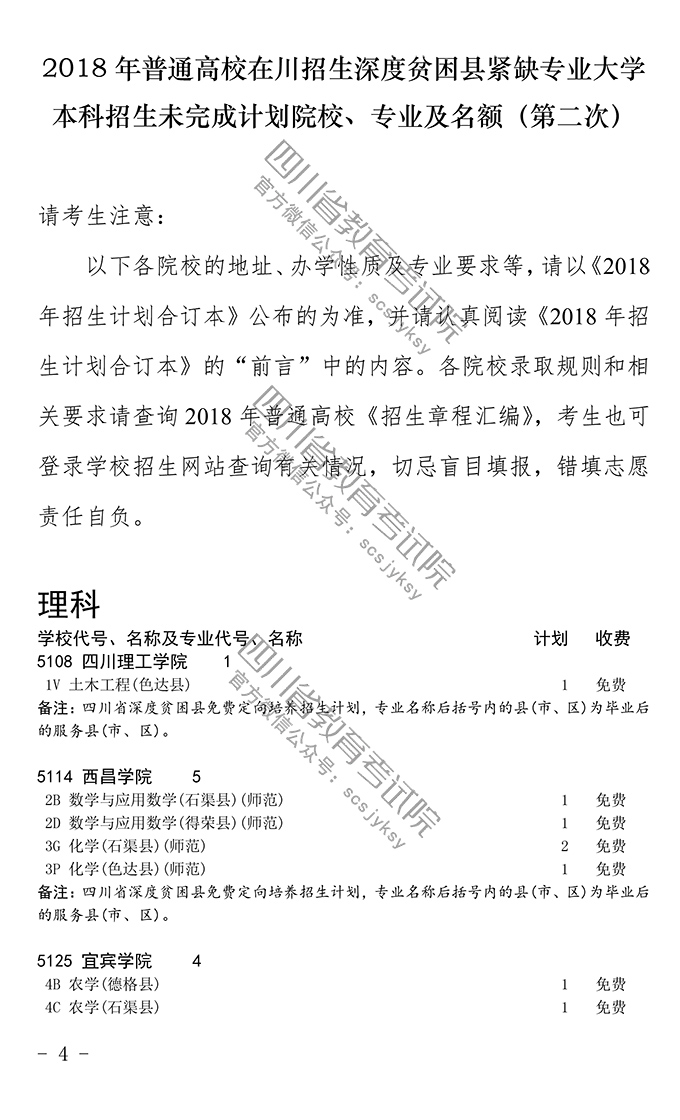 关于深度贫困县紧缺专业大学本科未完成计划院校第二次征集志愿的通知