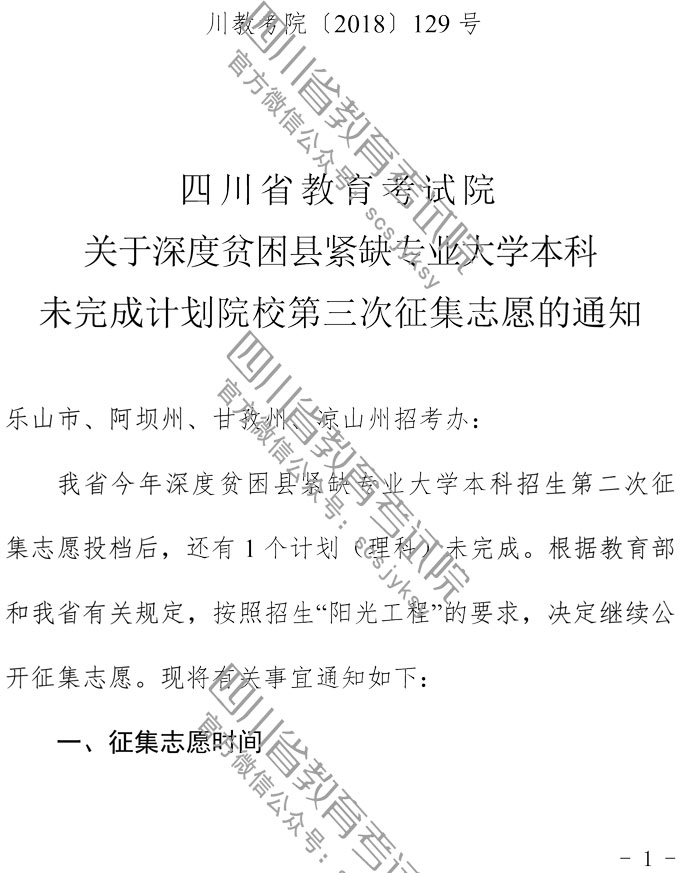 关于深度贫困县紧缺专业大学本科未完成计划院校第三次征集志愿的通知