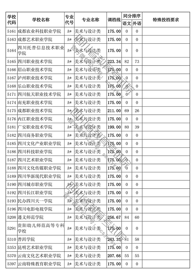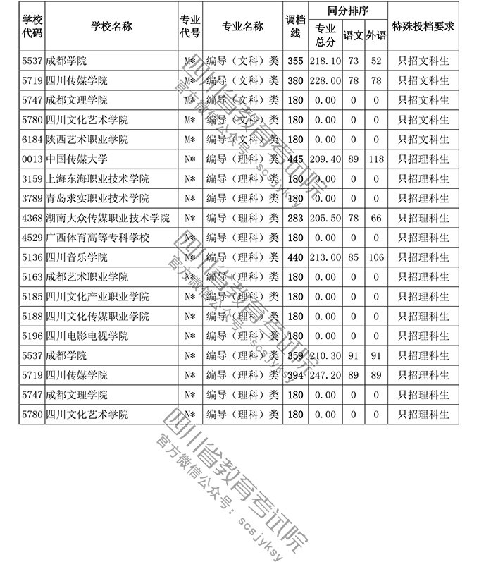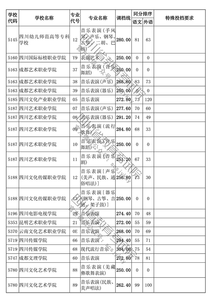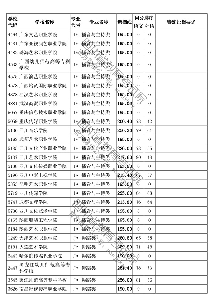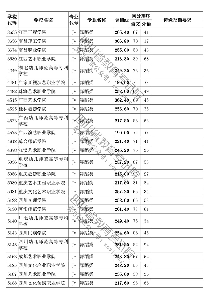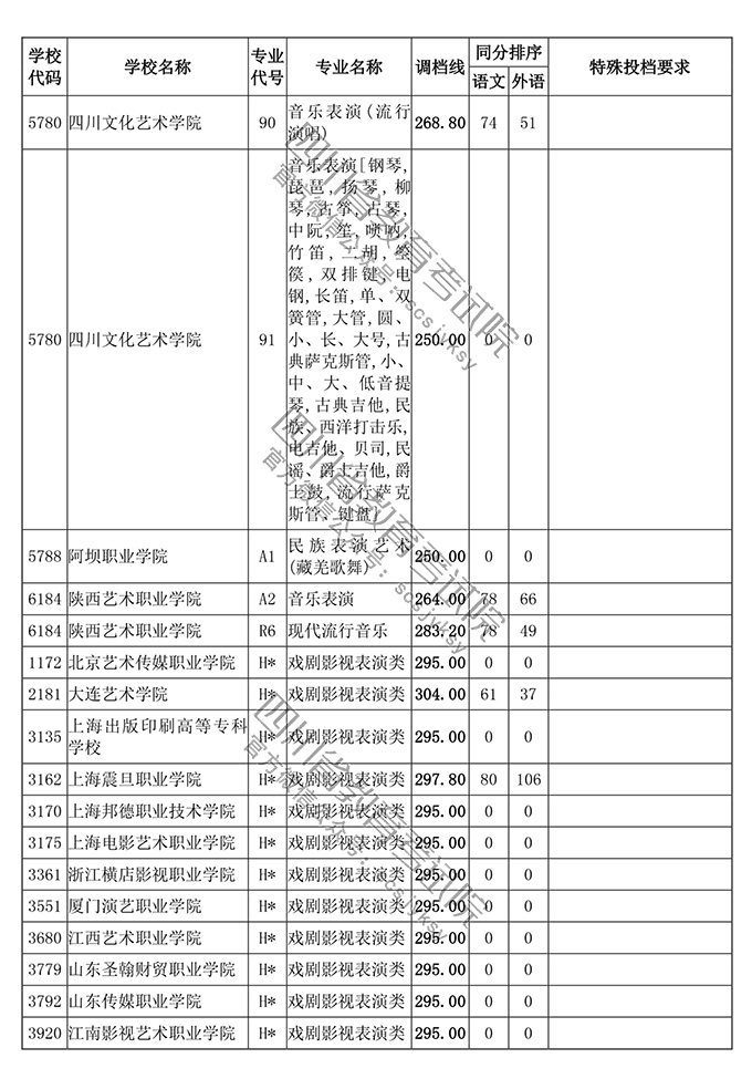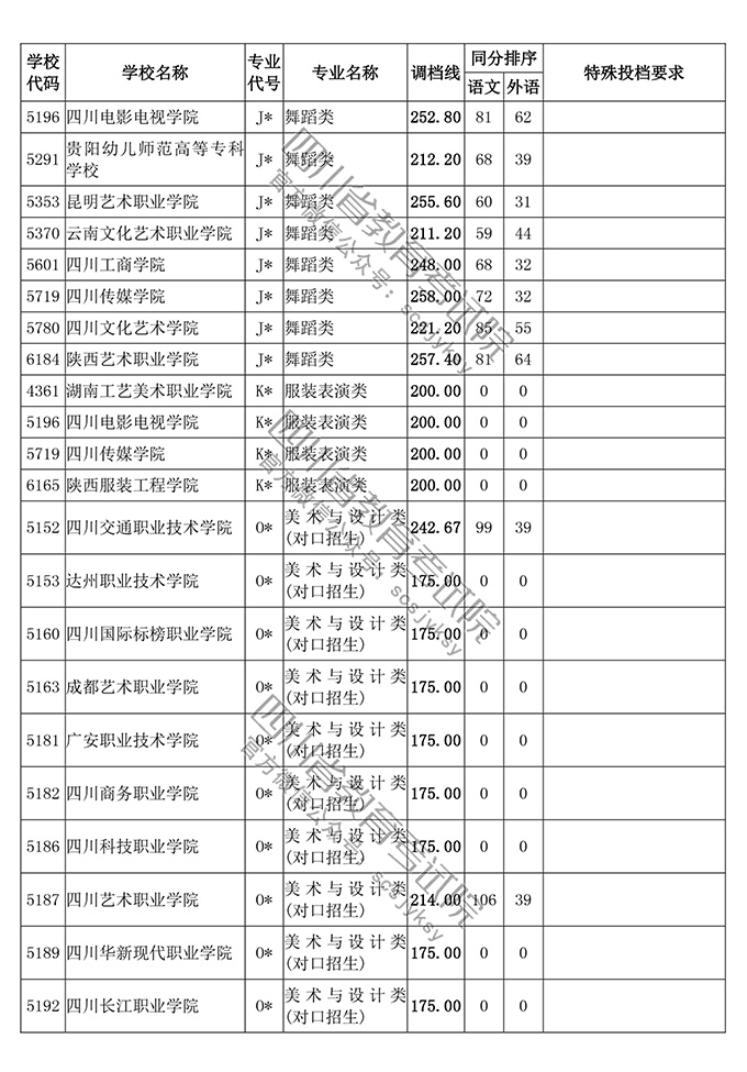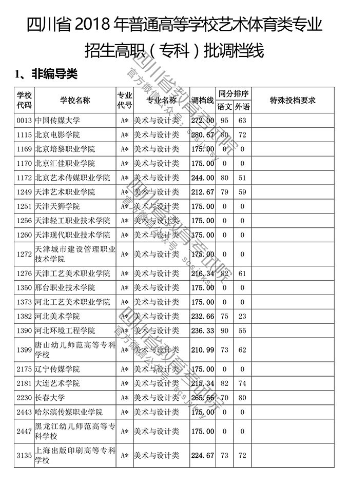 四川省2018年普通高等学校艺术体育类专业招生高职(专科)批调档线