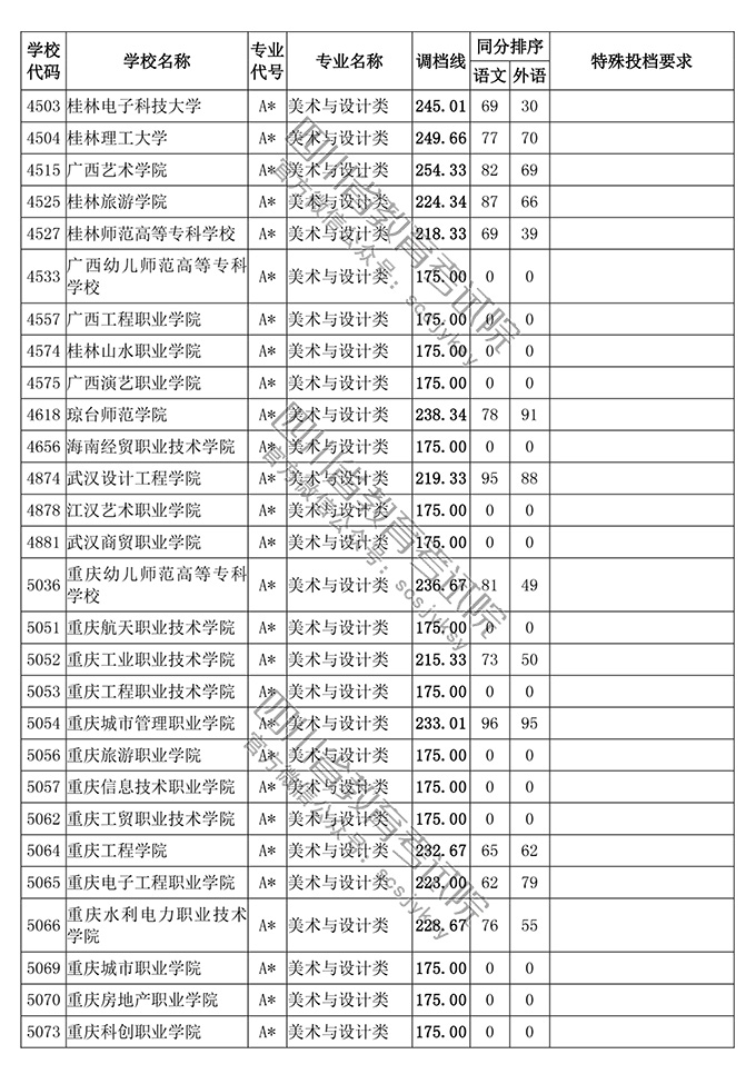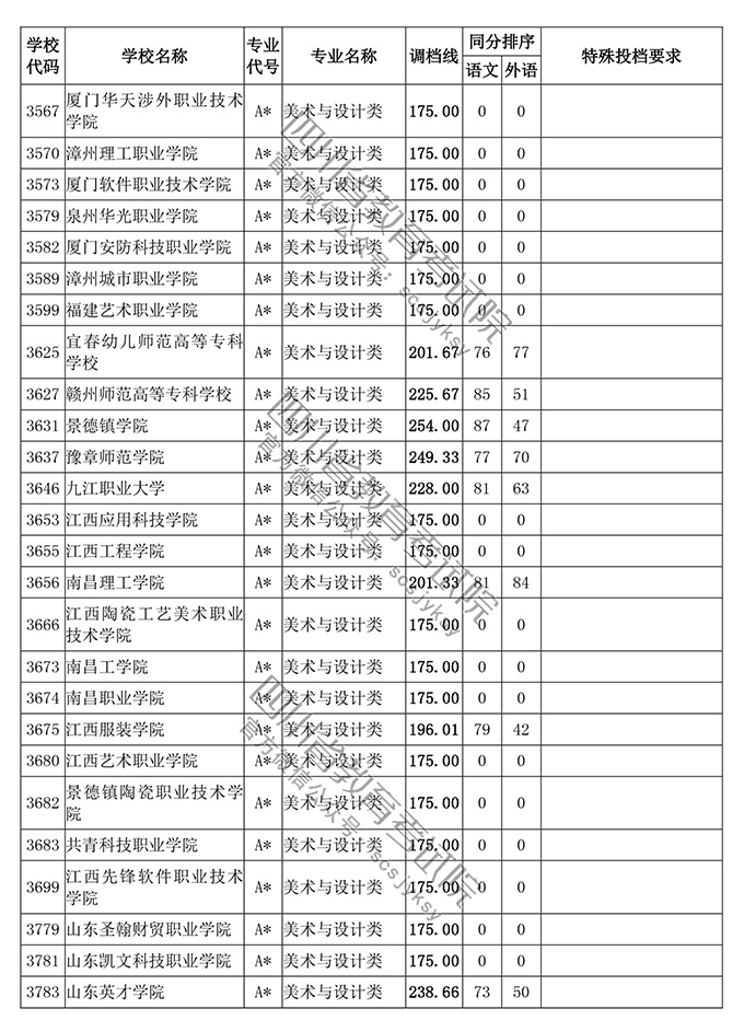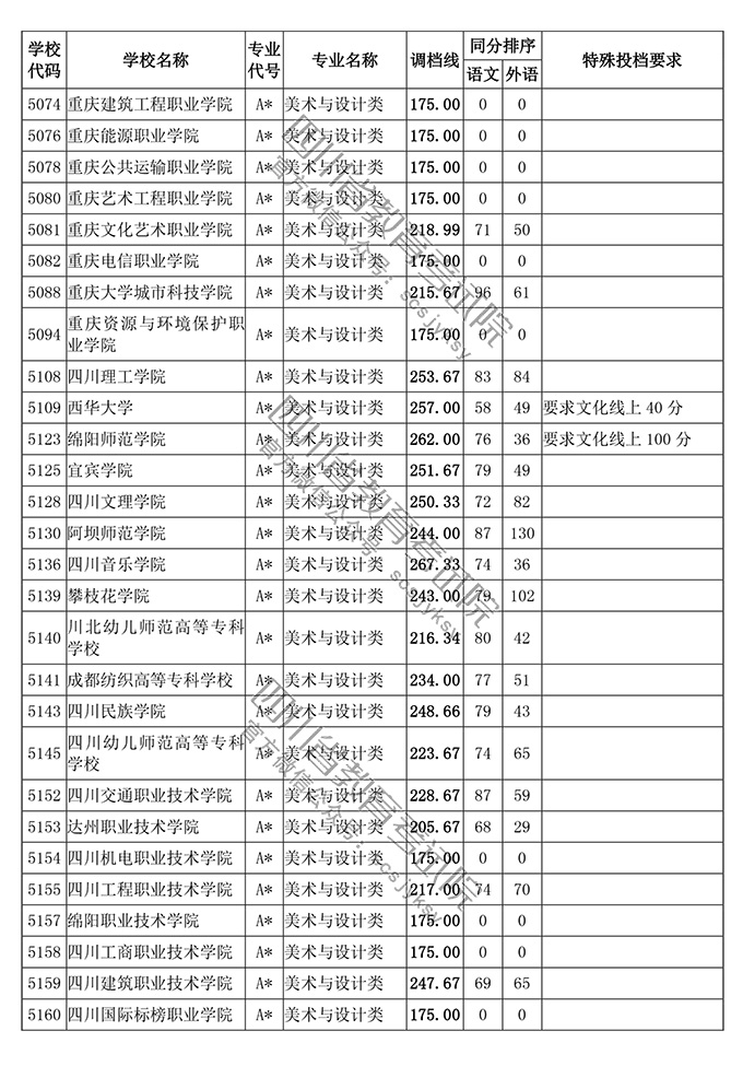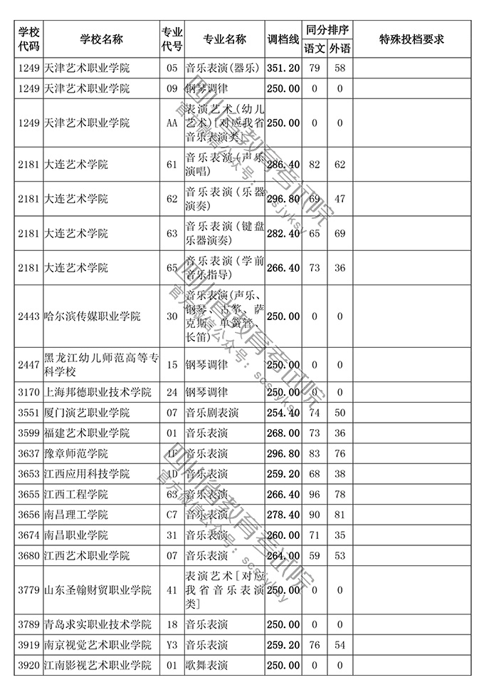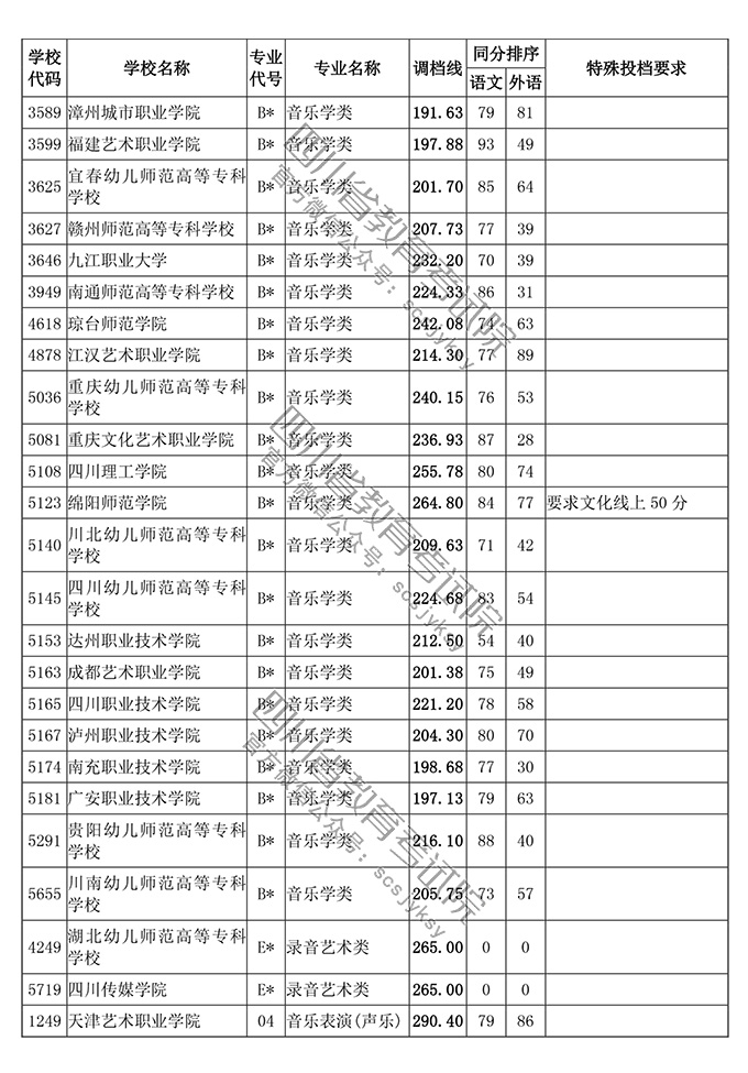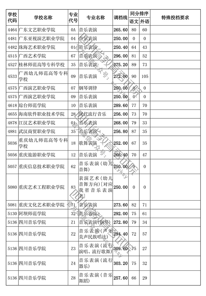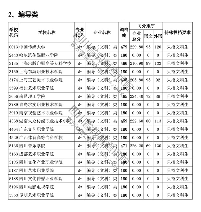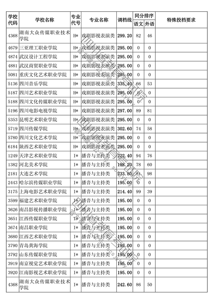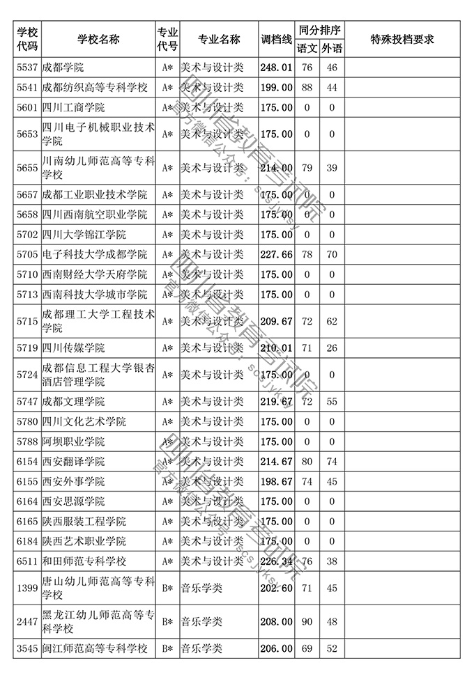 四川省2018年普通高等学校艺术体育类专业招生高职(专科)批调档线
