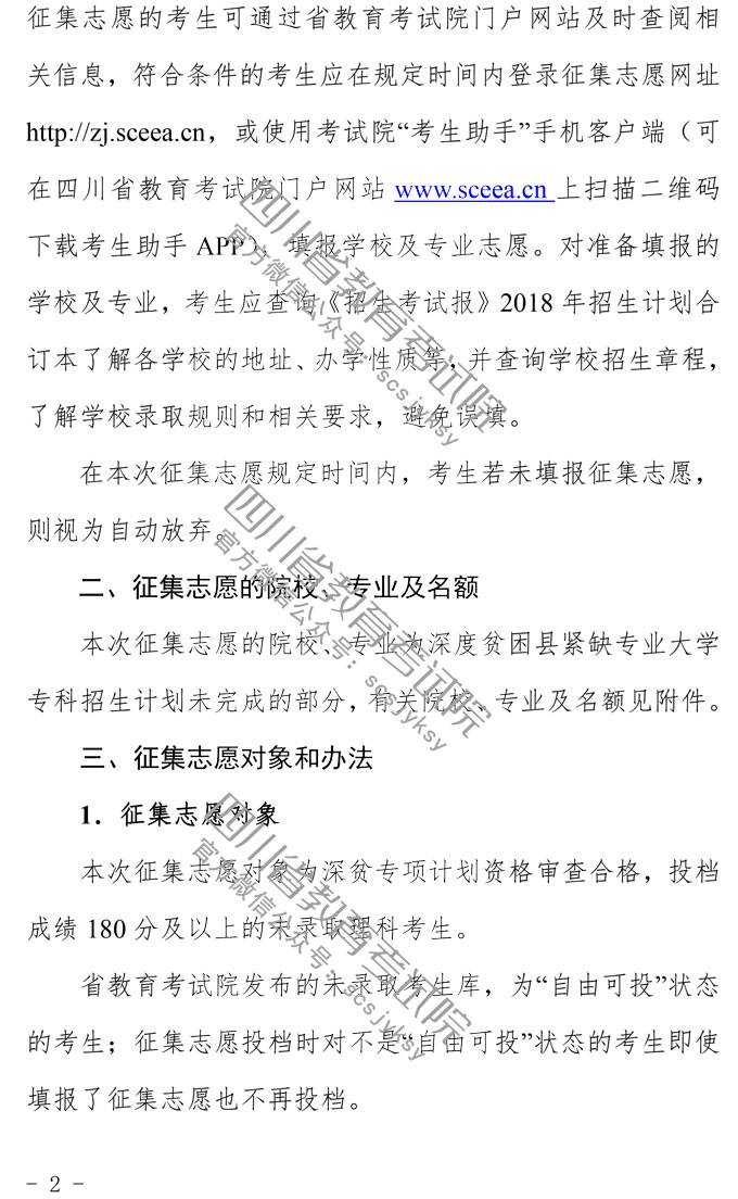 关于深度贫困县紧缺专业大学专科未完成计划院校征集志愿的通知