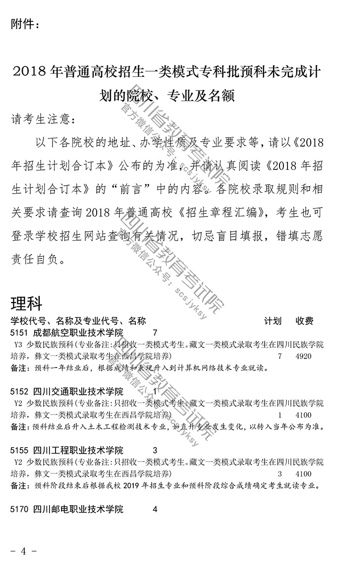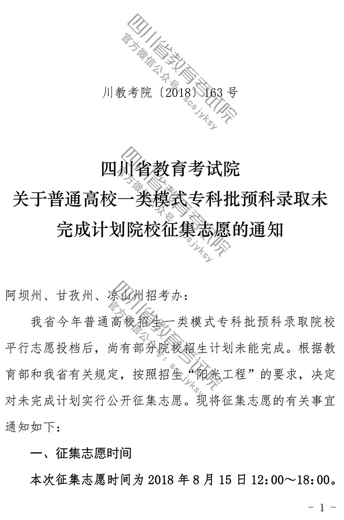 关于普通高校一类模式专科批预科录取未完成计划院校征集志愿的通知