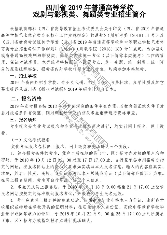 四川省2019年普通高等学校戏剧与影视类、舞蹈类专业招生简介