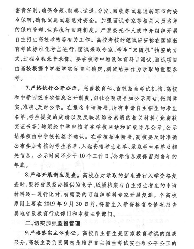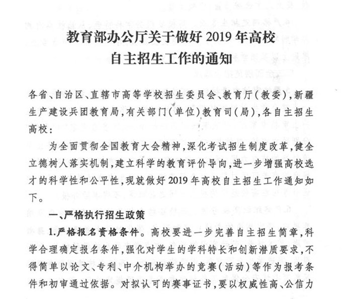 教育部办公厅关于做好2019年高校自主招生工作的通知