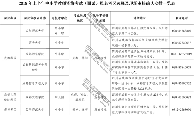 2019年上半年中小学教师资格考试四川省面试报名公告