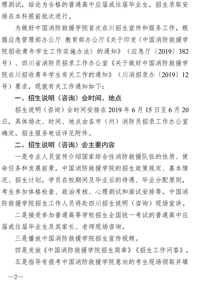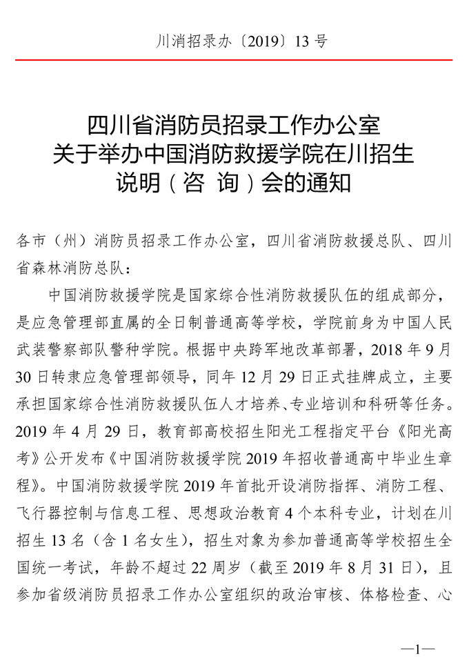 四川省消防员招录工作办公室 关于举办中国消防救援学院在川招生 说明(咨询)会的通知