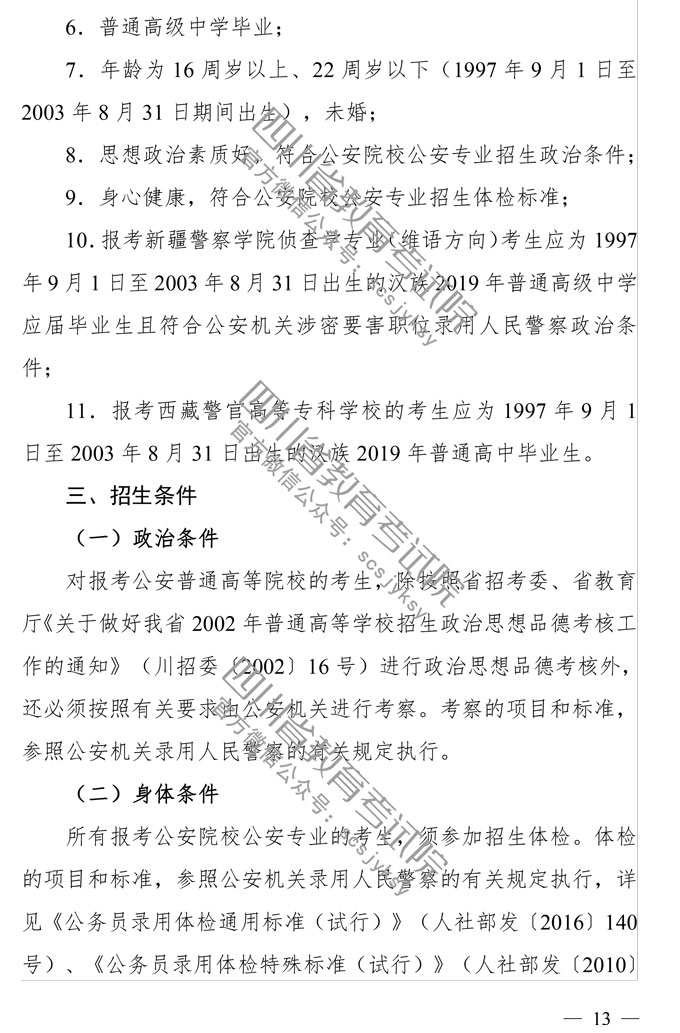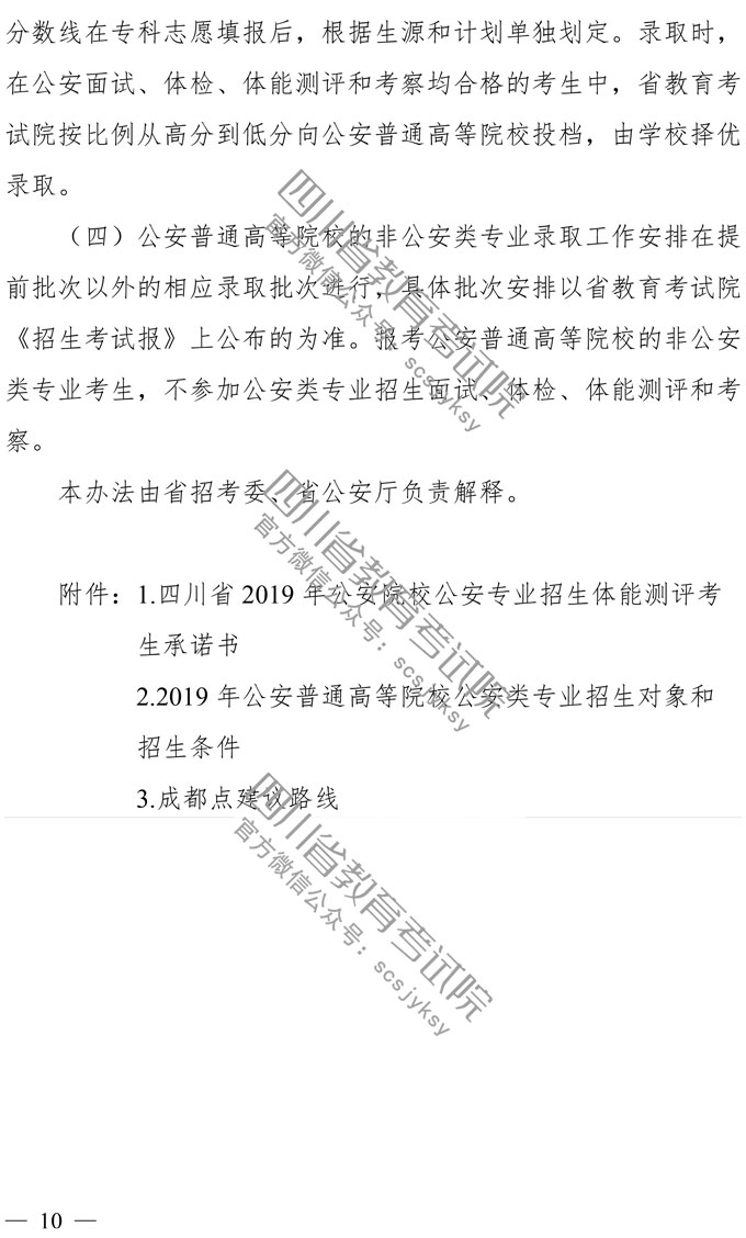 关于印发《四川省2019年公安普通高等院校公安类专业招生面试、体检、体能测评和考察工作办法》的通知