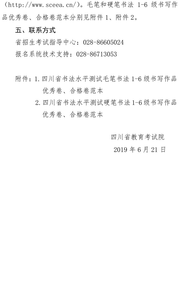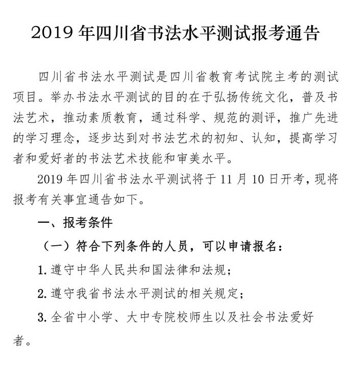 2019年四川省书法水平测试报考通告