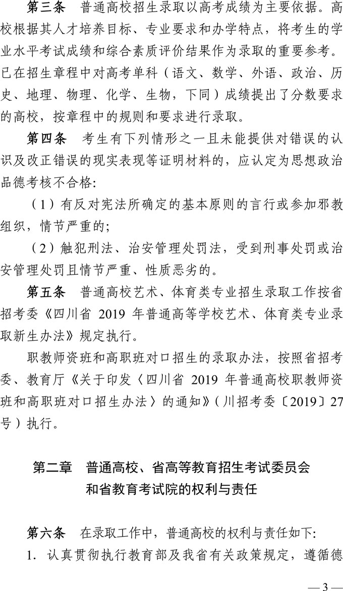 关于印发《四川省2019年普通高等学校录取新生办法》的通知