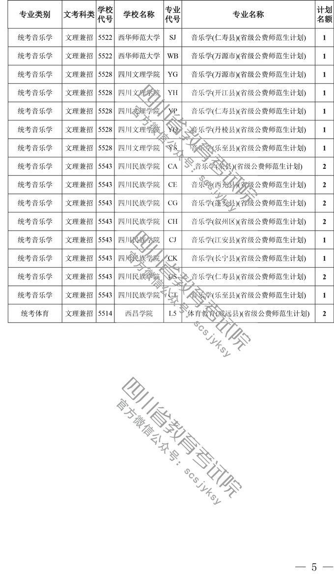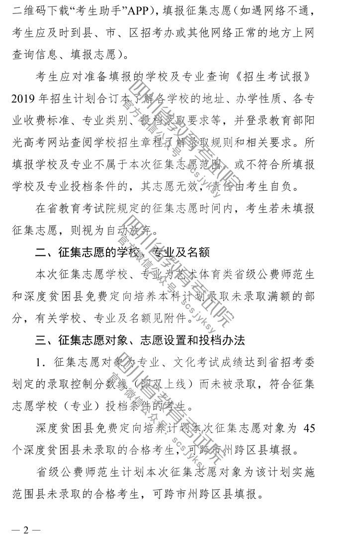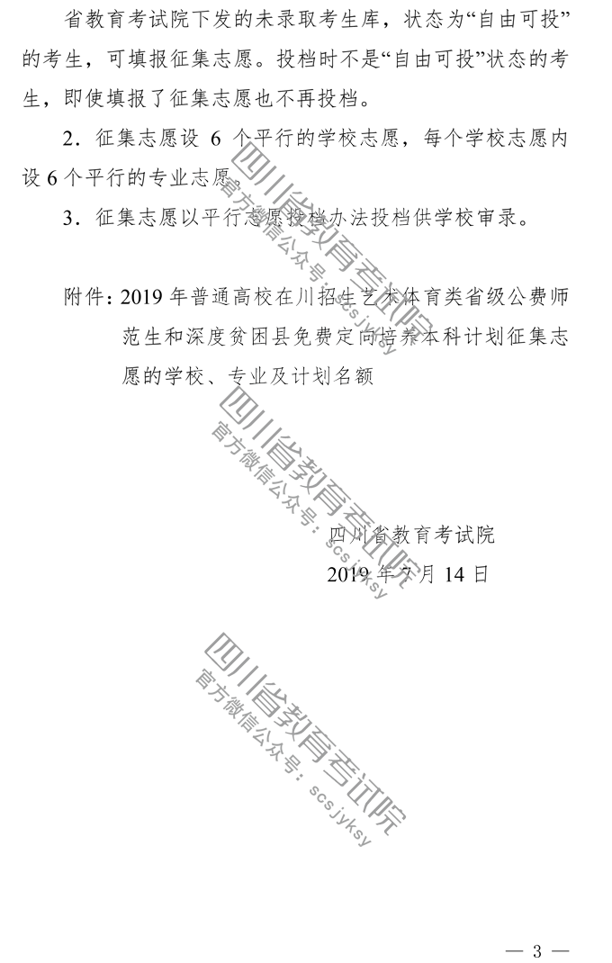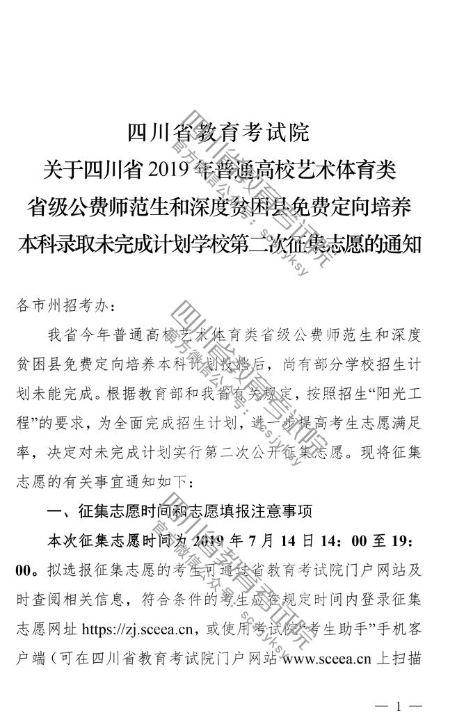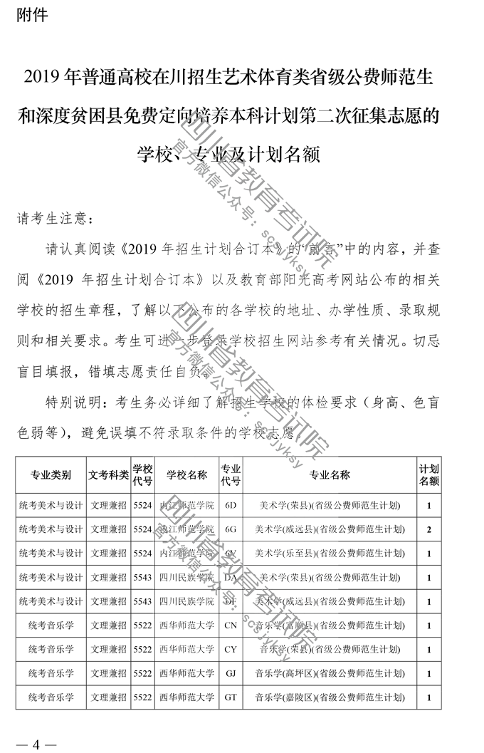 关于普通高校艺术体育类省级公费师范生和深度贫困县免费定向培养本科录取未完成计划学校第二次征集志愿的通知