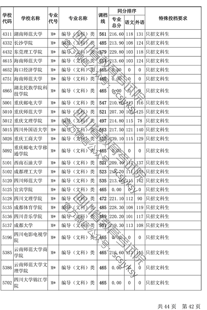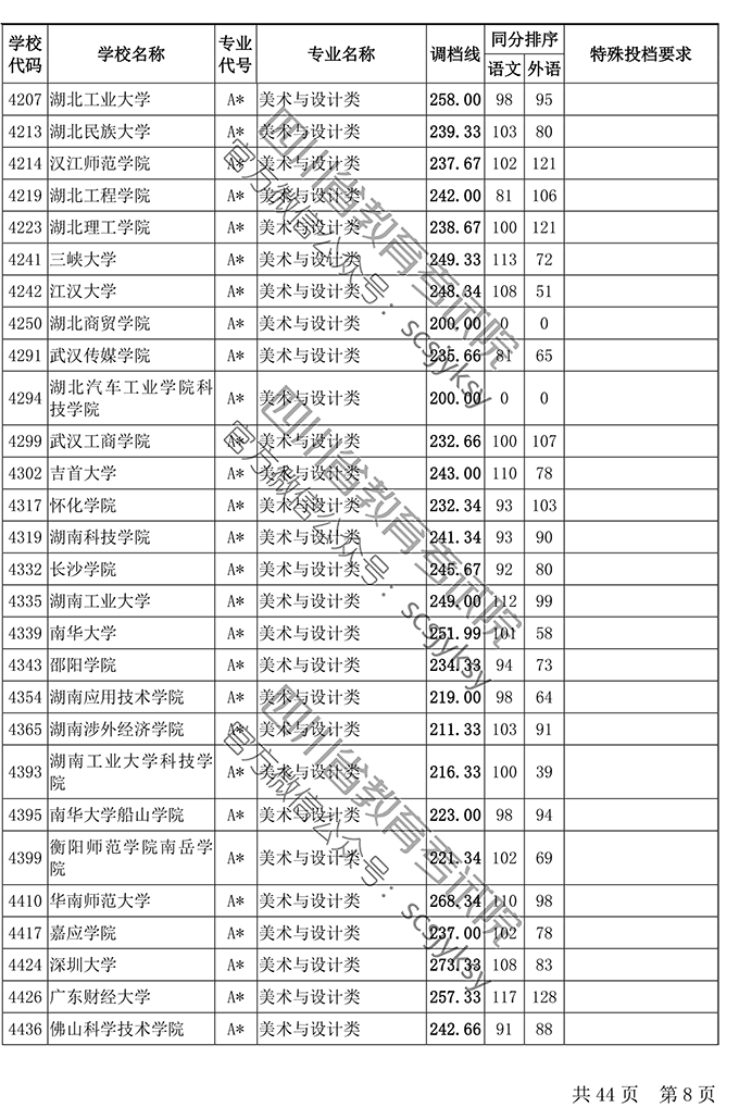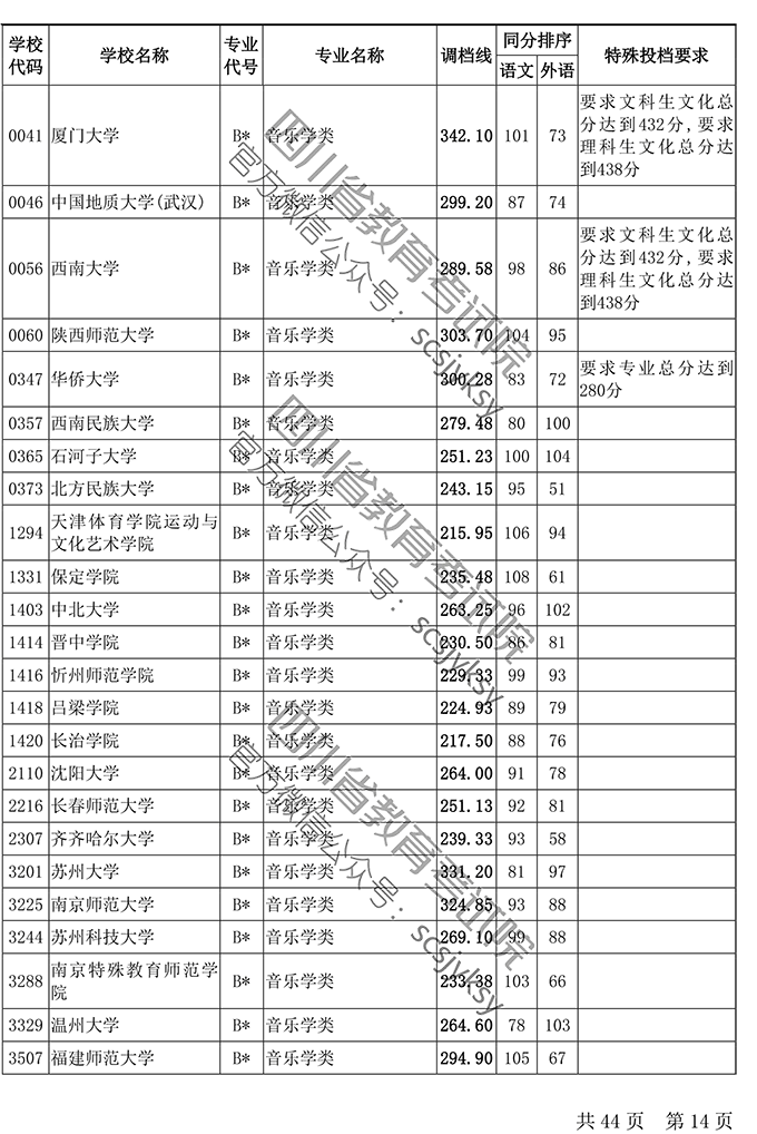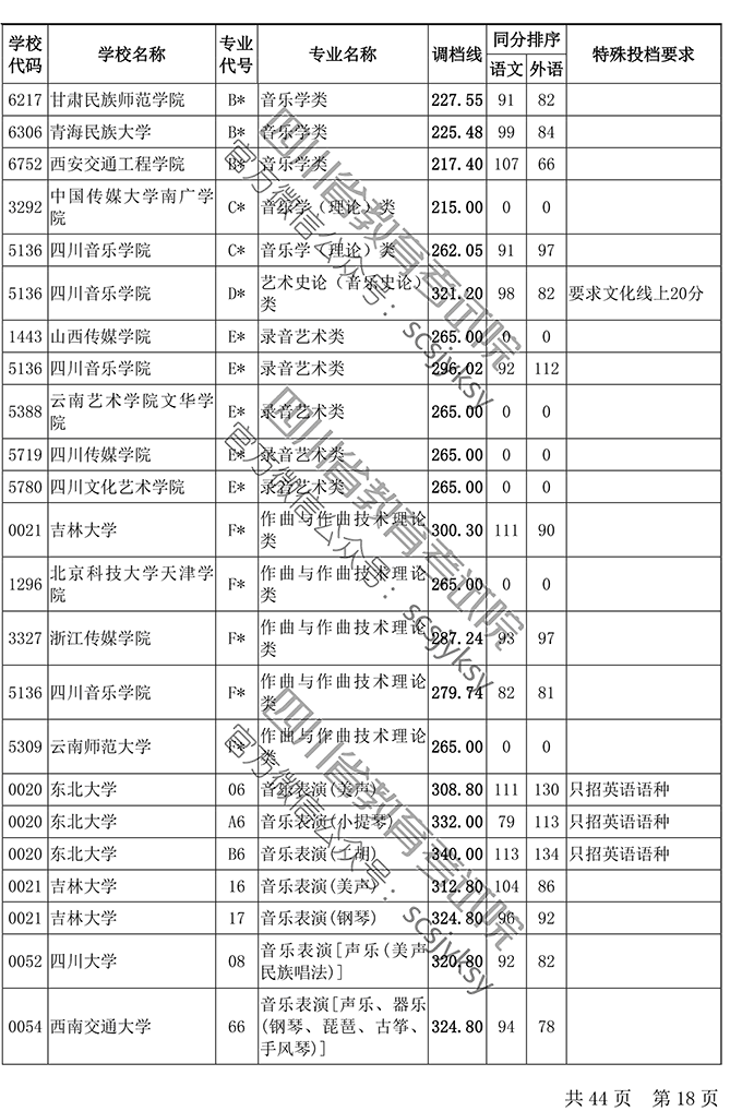 四川省2019年普通高等学校艺术体育类专业招生艺术类本科第一批、体育类本科批调档线