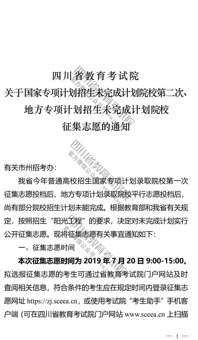 关于国家专项计划招生未完成计划院校第二次、地方专项计划招生未完成计划院校征集志愿的通知