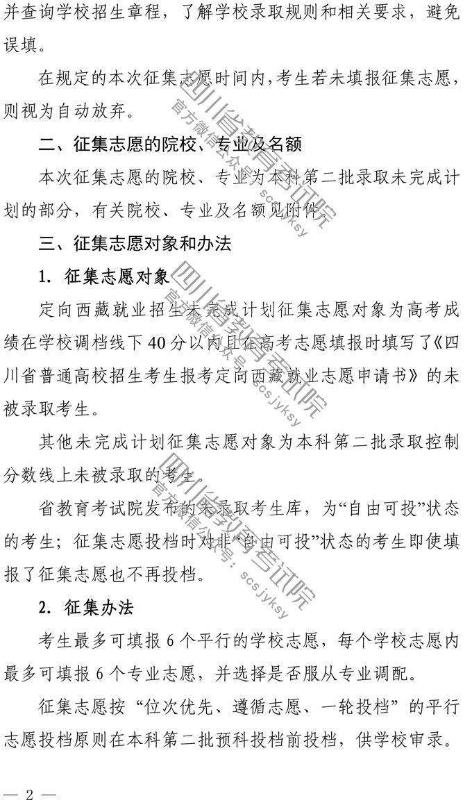 关于普通高校招生本科第二批录取未完成计划院校征集志愿的通知