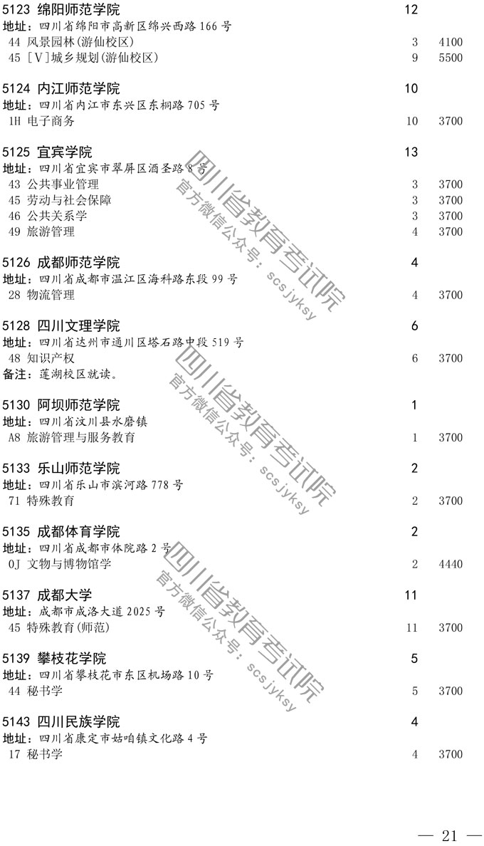 四川省高等教育自学考试2024年10月(242次)考试课表、课程简表
