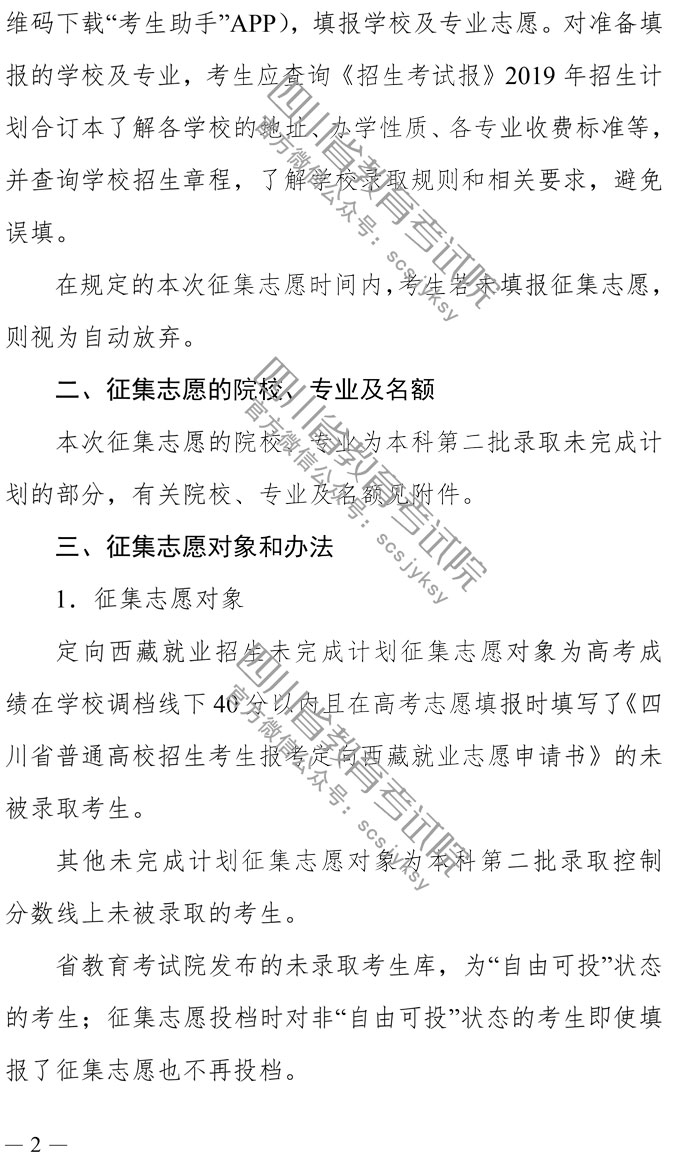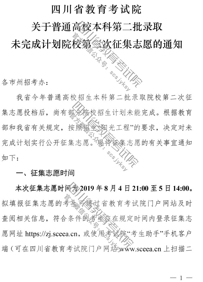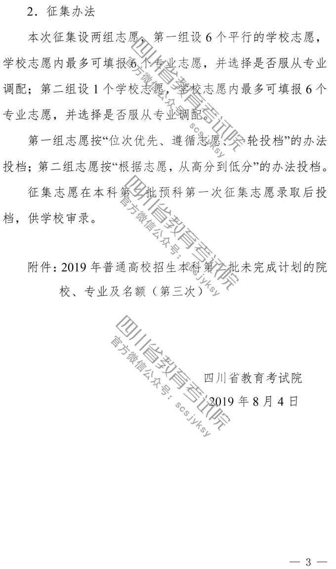 关于普通高校本科第二批录取未完成计划院校第三次征集志愿的通知