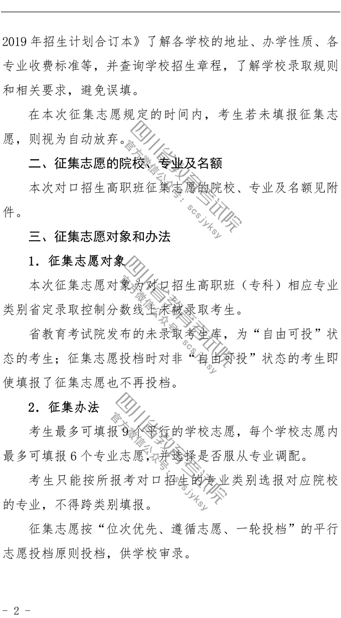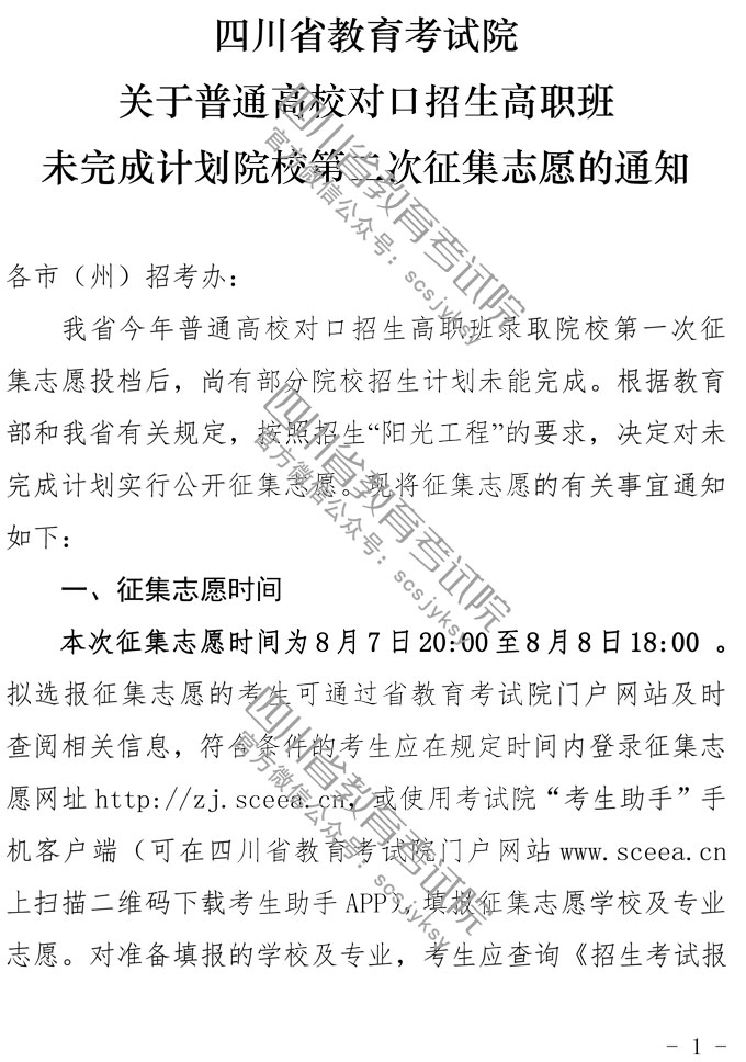关于普通高校对口招生高职班未完成计划院校第二次征集志愿的通知