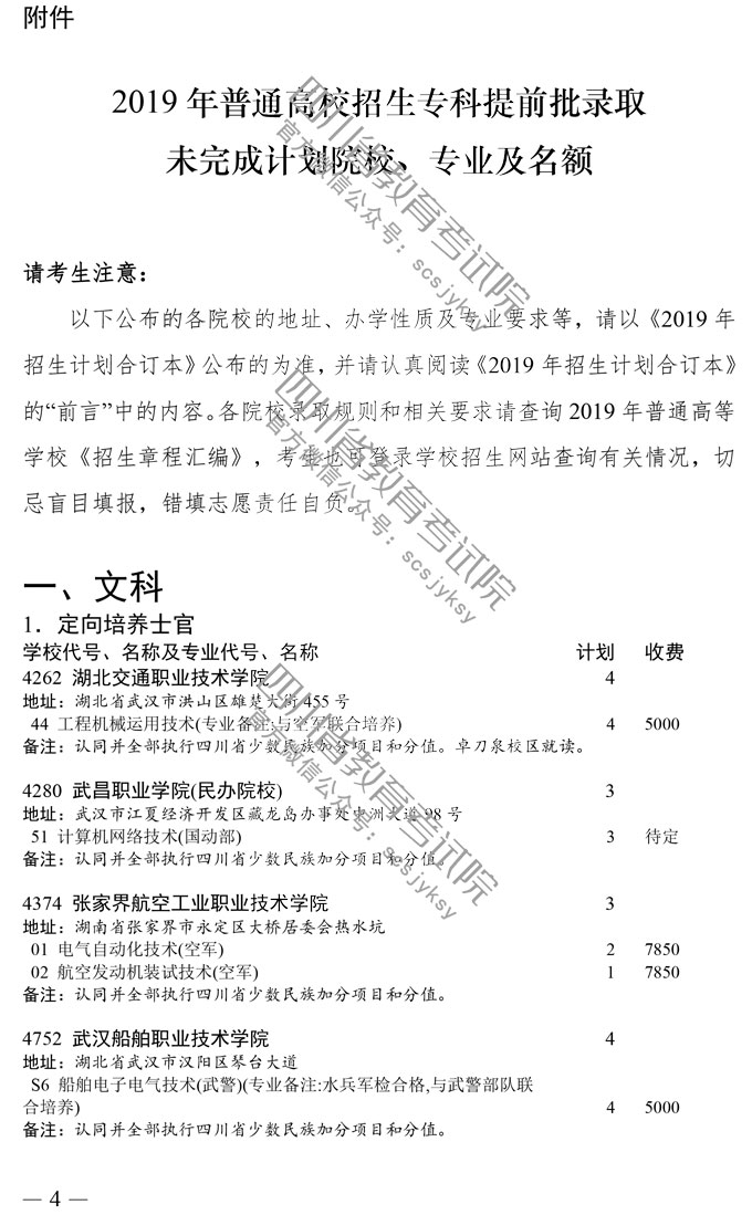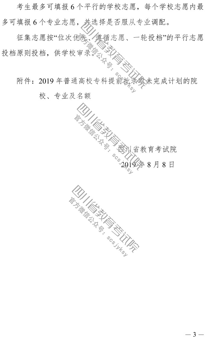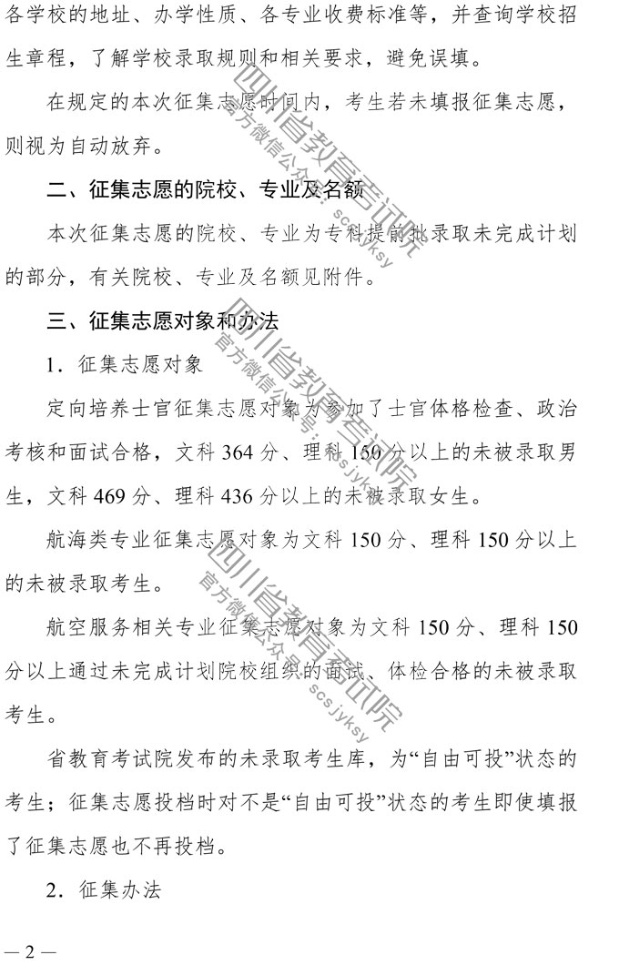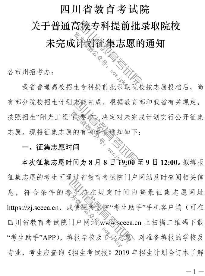 关于普通高校专科提前批录取院校未完成计划征集志愿的通知