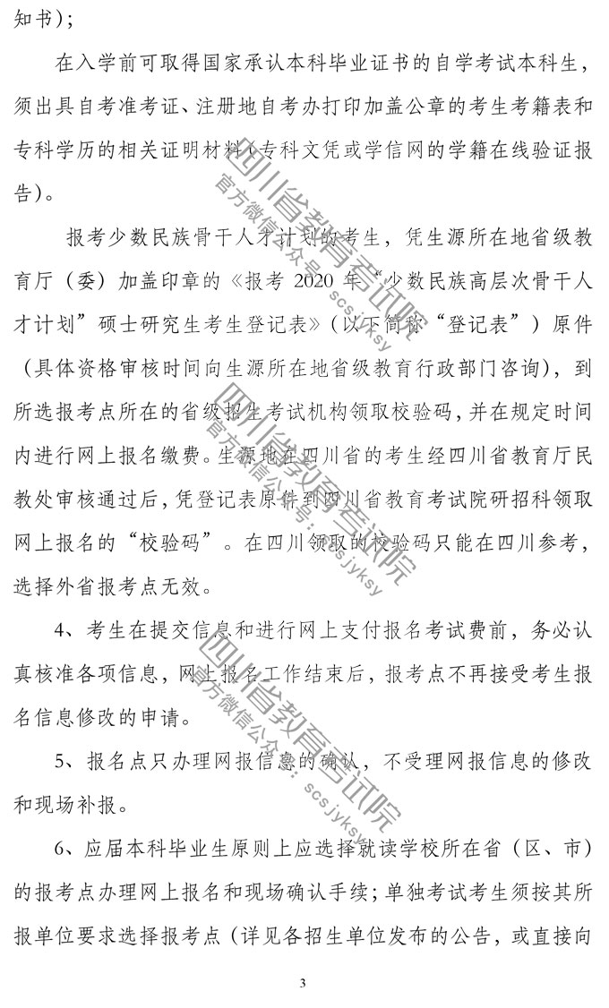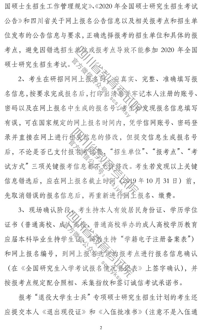 四川省2020年全国硕士研究生招生考试网上报名公告