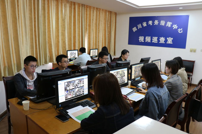省教育考试院视频巡查专项工作组通过网络视频对21个考区的保密室、考点、考场等进行实时巡查,实现考试巡查全覆盖。省教育考试院还派出了3个巡考组督促检查指导市(州)、县(市、区)的组考工作;各市(州)也向所辖县(市、区)派出巡考组,对所有考点实行驻点巡查。