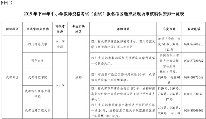 2.2019年下半年中小学教师资格考试(面试)报名考区选择及现场审核确认安排一览表