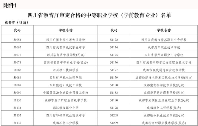 1.四川省教育厅审定合格的中等职业学校(学前教育专业)名单