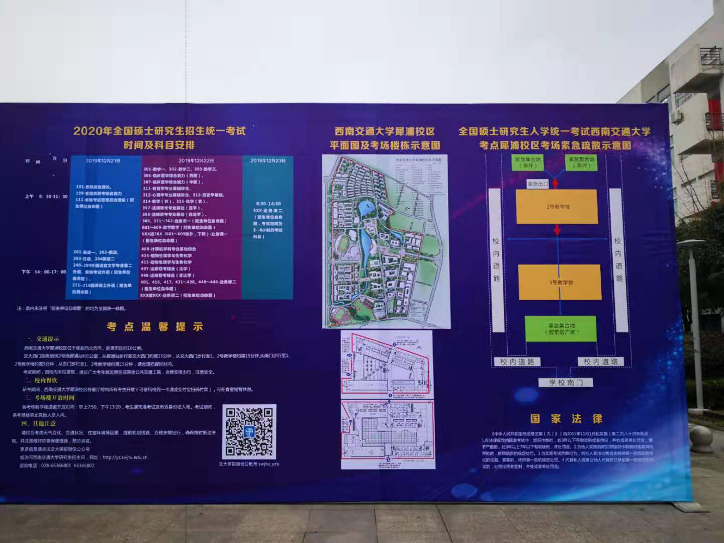 2020年全国硕士研究生招生考试于2019年21-22日进行。全省参考总人数174815名,共设考区19个,报考点53个,考场近6000个,监考员和考务工作人员近2万人。