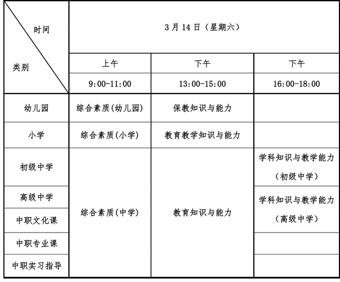 (二)考试时间:2020年3月14日。所有科目考试均采用纸笔方式进行,具体安排如下: