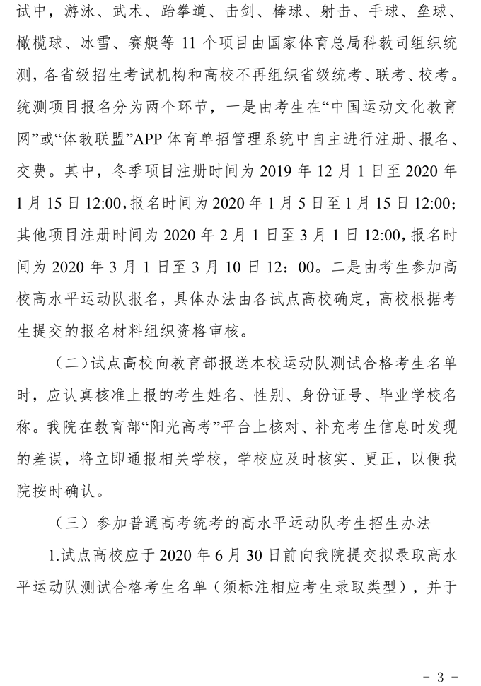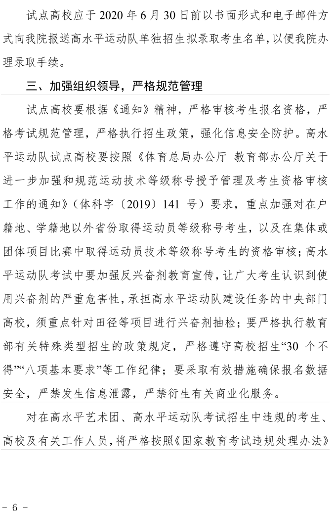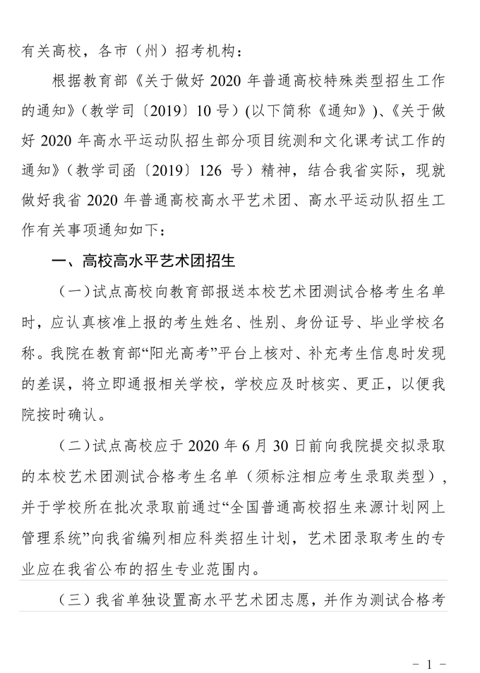 关于做好我省2020年普通高校高水平艺术团、高水平运动队招生工作的通知