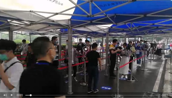 上午8点半左右,在成都职业技术学院(高新校区)、四川邮电职业技术学院、成都农业科技职业技术学院等考点,考生按照1米间距排队,扫描健康码,识别身份证,依序通过测温区,在考务人员的引导下,通过考试专用通道走进考场。