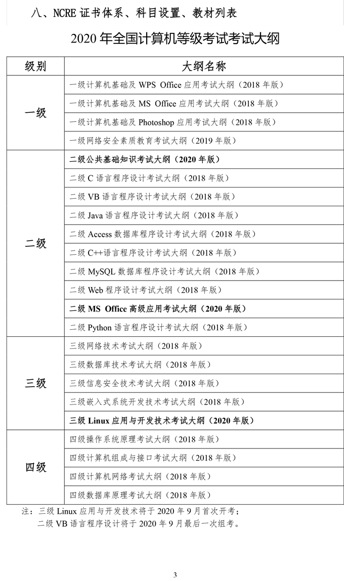 根据教育部考试中心统一安排, 现将我省2020年9月全国计算机等级考试有关报考事宜通告如下。