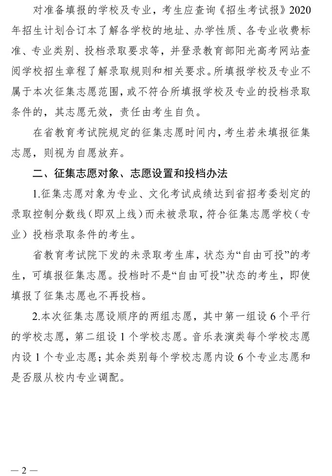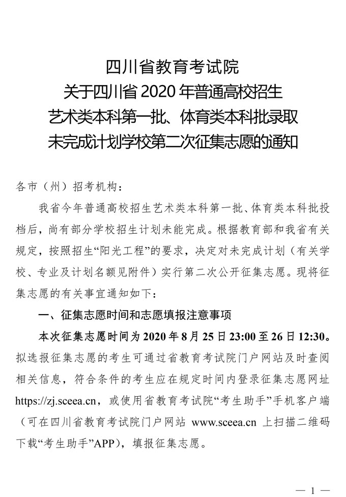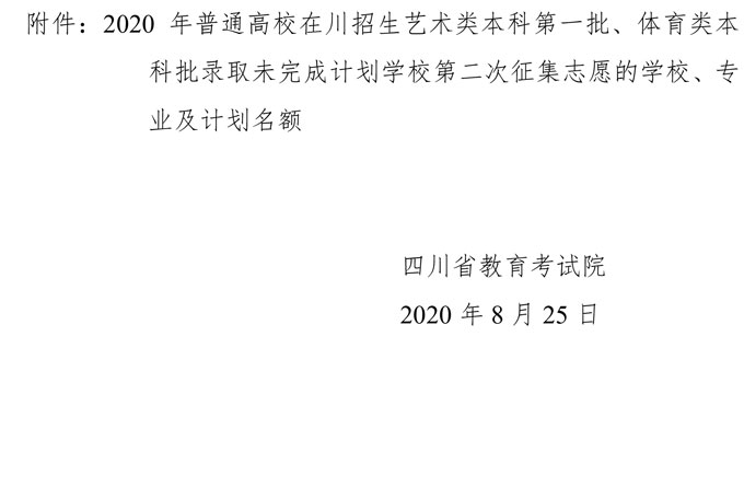 关于四川省2020年普通高校招生艺术类本科第一批、体育类本科批录取未完成计划学校第二次征集志愿的通知