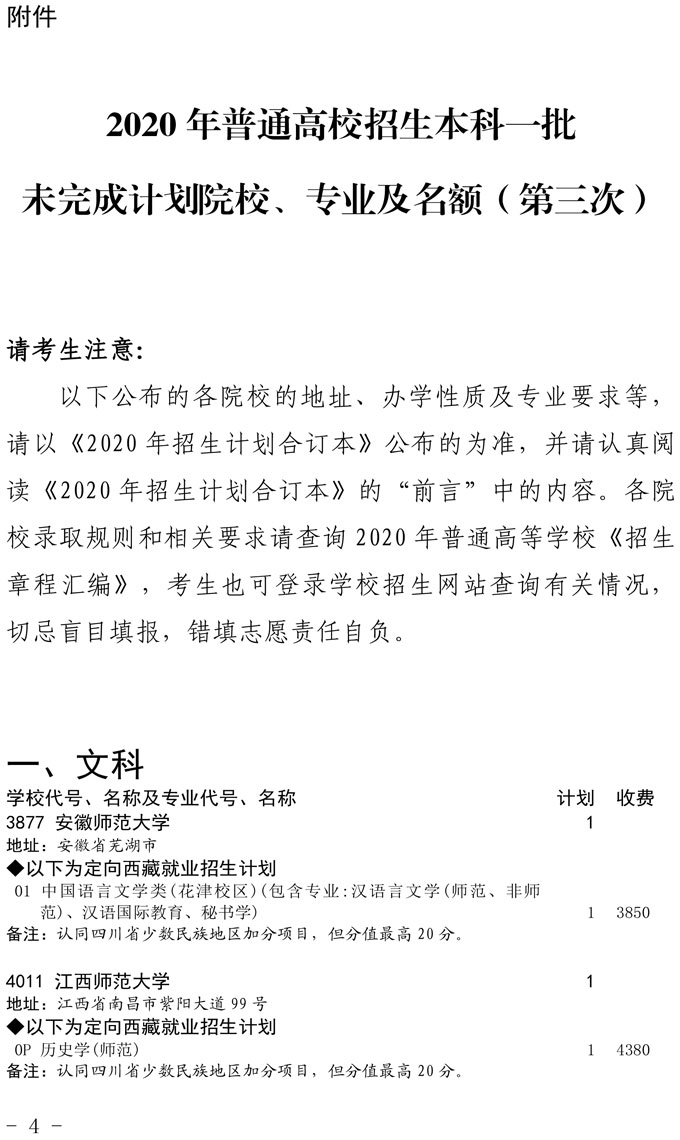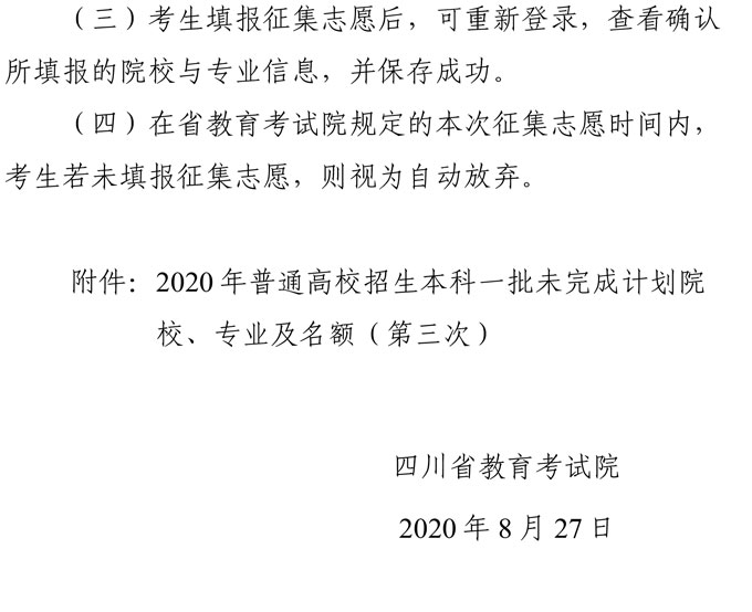关于本科第一批未完成计划院校第三次征集志愿的通知