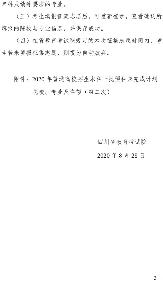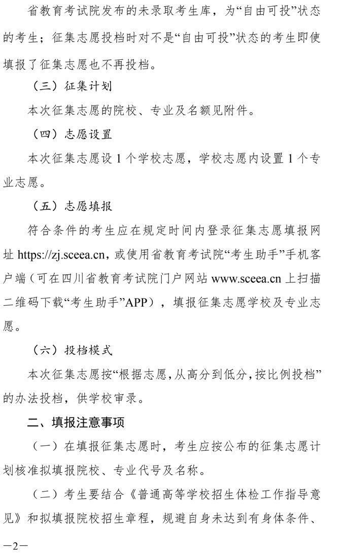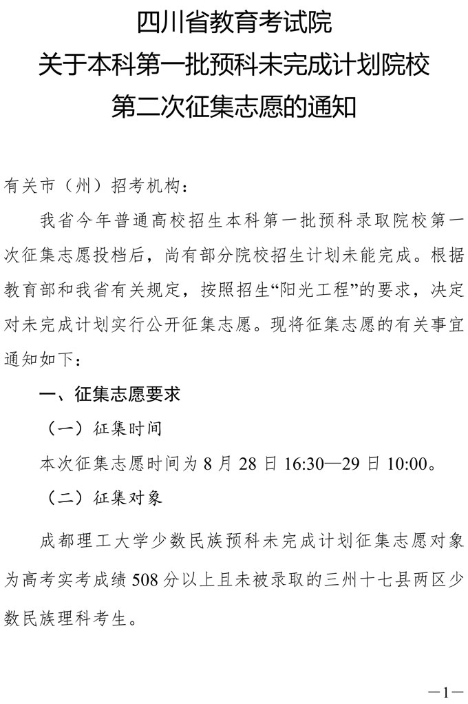 关于本科第一批预科未完成计划院校第二次征集志愿的通知