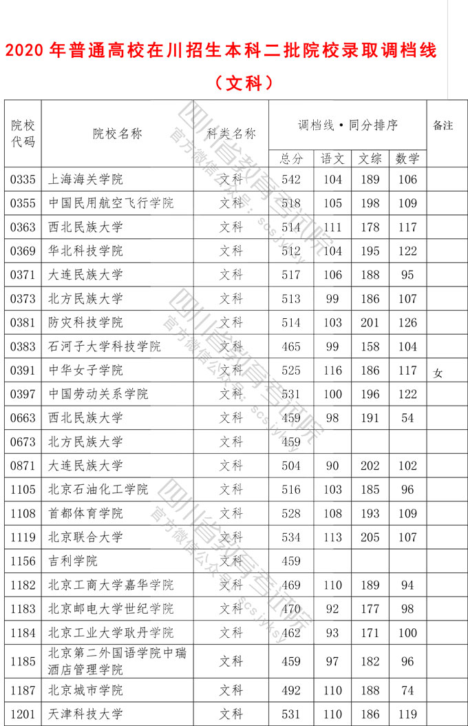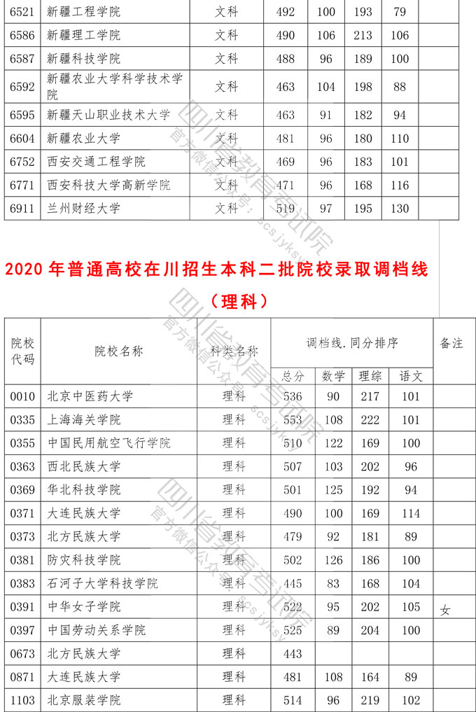 2020年普通高校在川招生本科二批院校录取调档线出炉
