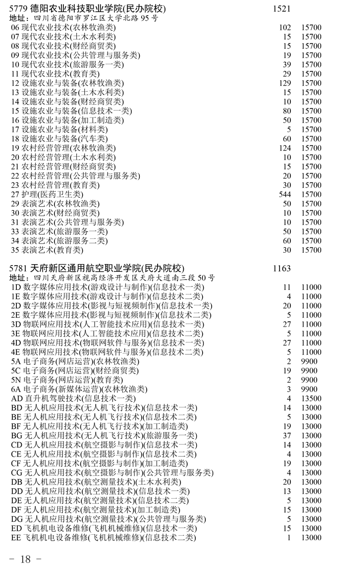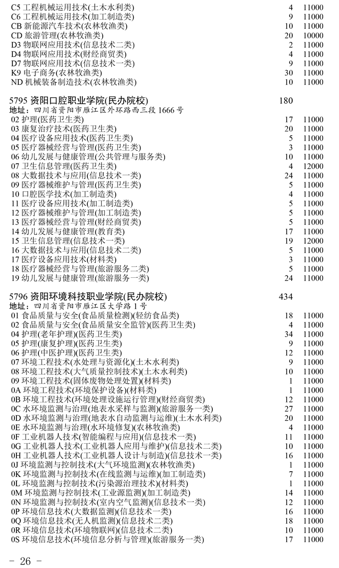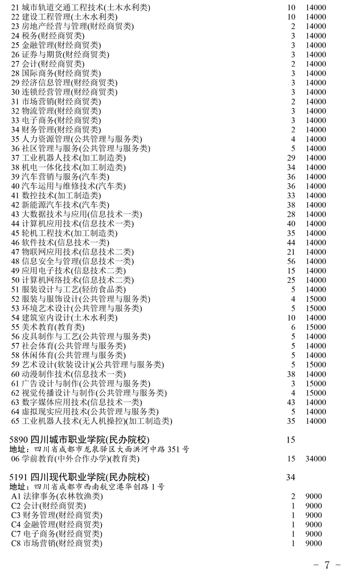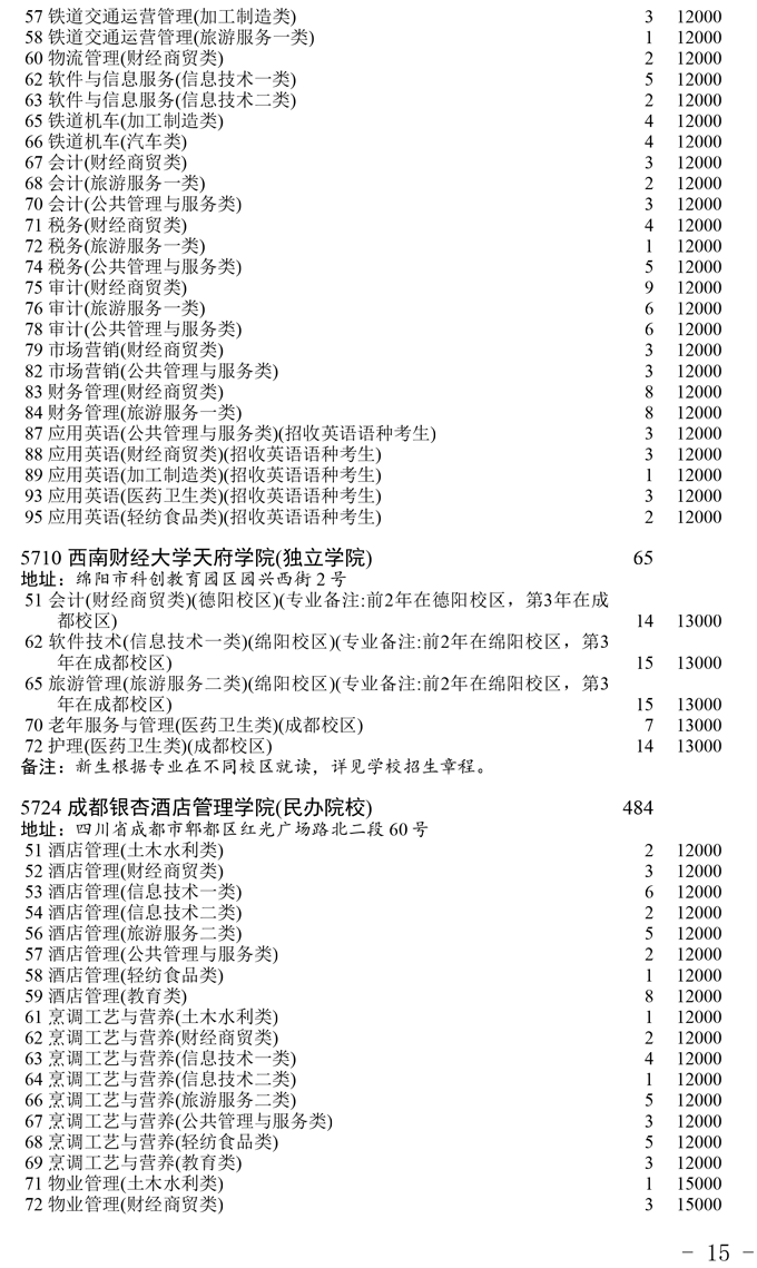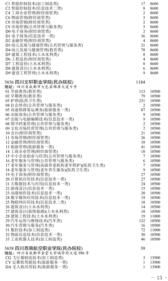 四川省2025年普通高校专升本招生专业及计划