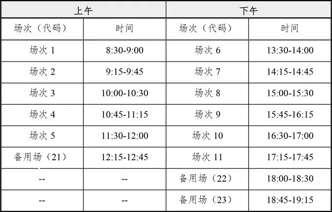 英语四级口语考试(CET-SET4)考试时间为11月21日(F203次),英语六级口语考试(CET-SET6)考试时间为11月22日(S204次),具体场次安排如下: