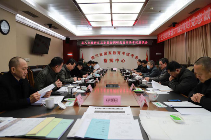 座谈会上,王学定一行听取了我省书法学专业统考和书法水平测试的组考情况汇报,对我省书法学专业统考和书法水平测试工作给予了充分肯定。王学定主任指出,我省书法学专业统考科目设计合理,评卷工作科学公正,顺应了高校和中小学对“书法学”专业教学人才以及社会对书法专业人才的需求,具有良好的社会效应;书法水平测试为中小学生和其他书法爱好者提供了一个检验学习效果、客观认定习练者书法水平的权威平台,有利于提高中小学生汉字书写能力,培养审美情趣,陶冶高尚情操,提升文化修养,促进德智体美劳全面发展。他强调,要加强书法考试的宣传工作,加大书法教师师资培训力度,严谨细致做好评卷工作,打造特色化考试的“四川品牌”和“四川名片”。