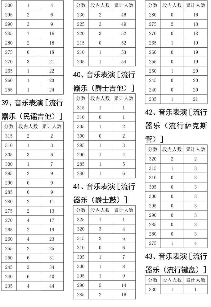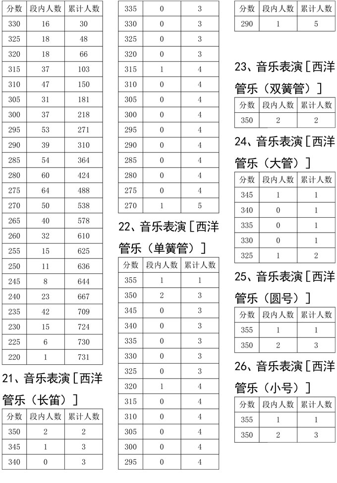 四川省2021年普通高校招生艺术类专业统考(音乐类)成绩五分段统计表