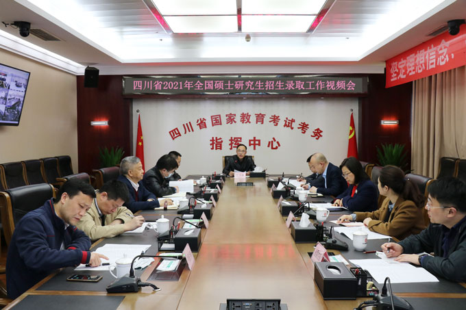 3月19日,我省2021年全国硕士研究生招生录取工作视频会议召开。会议贯彻落实全国研究生招生录取工作会议精神,全面部署我省硕士研究生招生录取工作。省招考委委员、省教育考试院党委书记丁念友同志出席会议并讲话。会议以网络视频会议形式召开,在四川省国家教育考试考务指挥中心设主会场,在17个研究生招生单位设分会场。