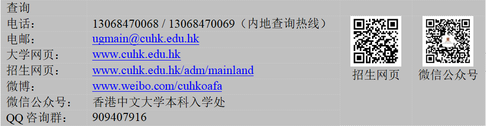 香港中文大学通过「全国普通高校统一招生计划」招收内地本科学生,提前批次录取。内地招生计划分设人文、理科、工科、商科四个学科门类。