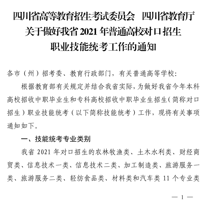 关于做好我省2021年普通高校对口招生职业技能统考工作的通知