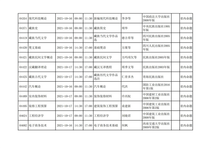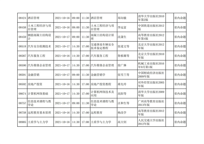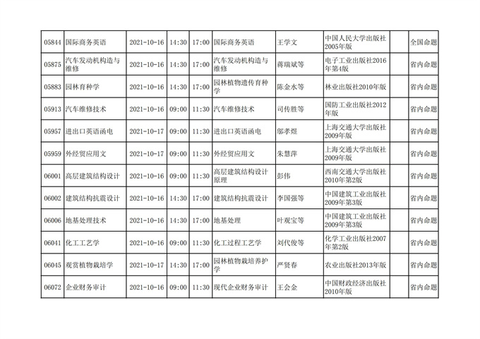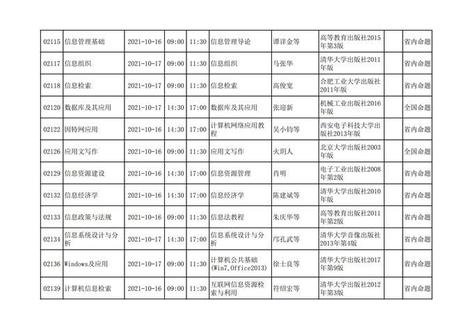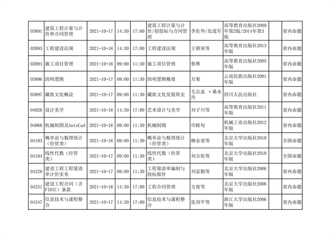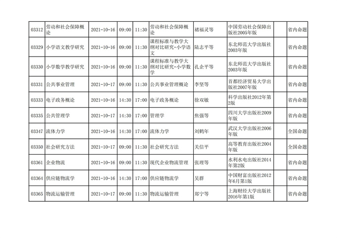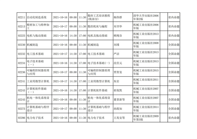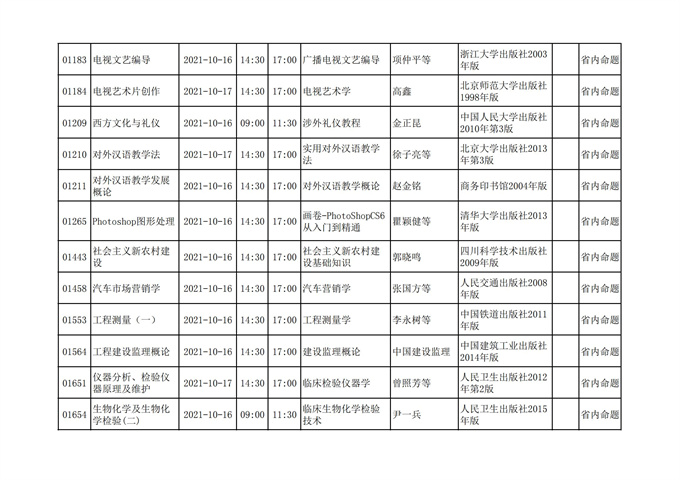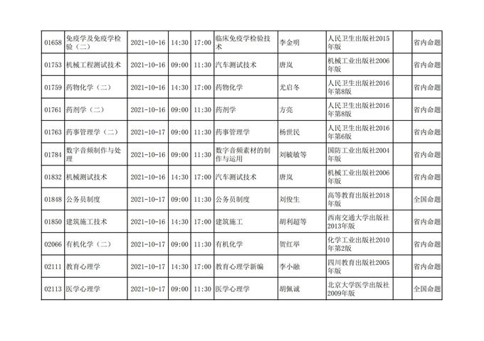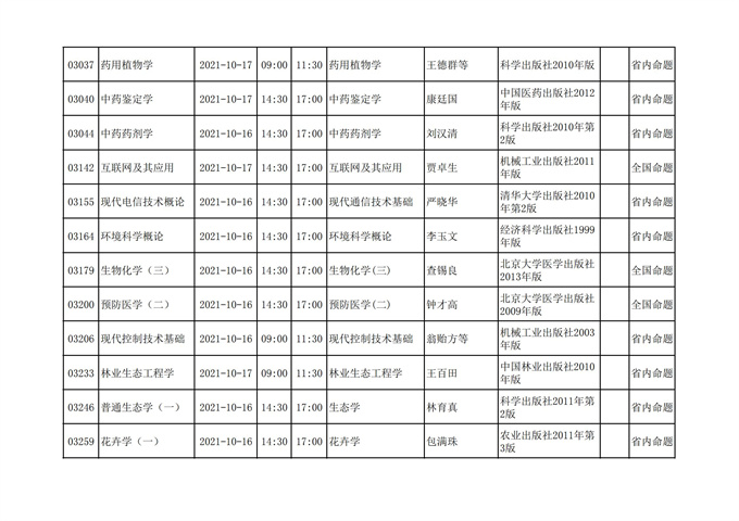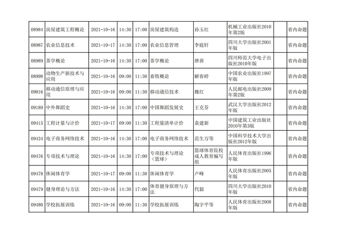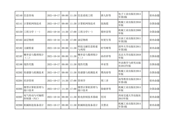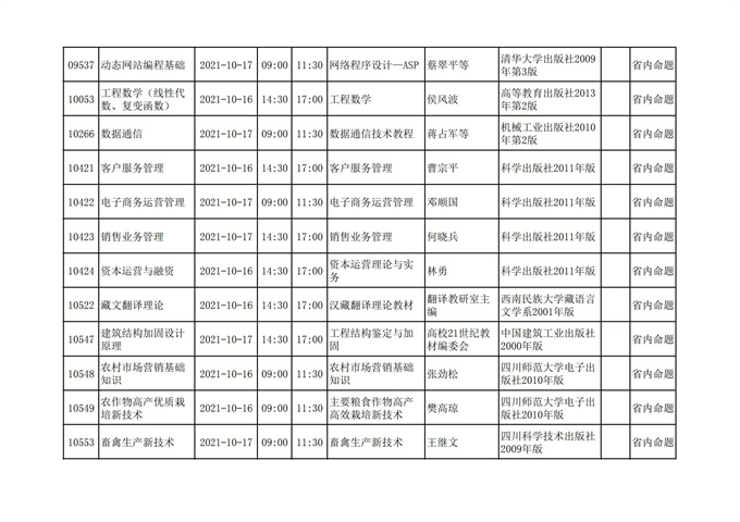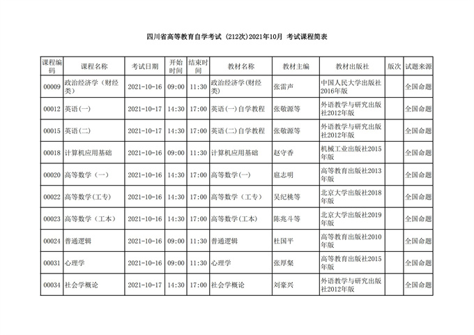 四川省高等教育自学考试212次2021年10月考试课表、课程简表(第1页考试课表,第2页课程简表)