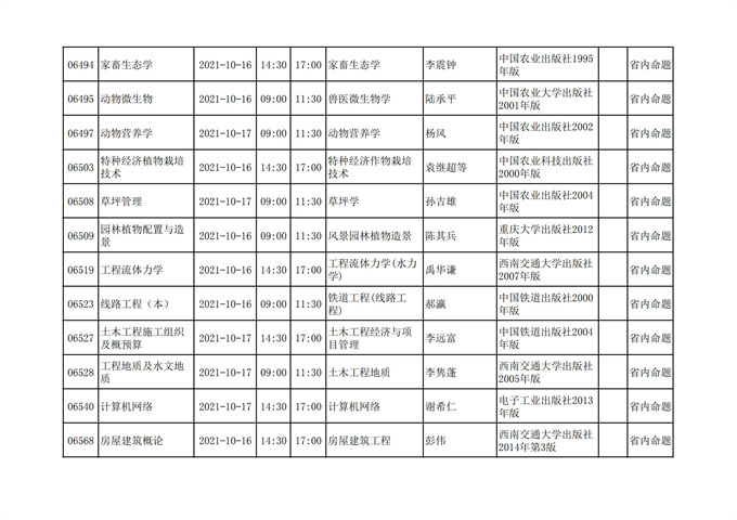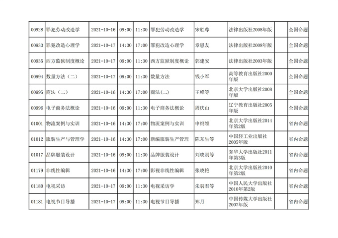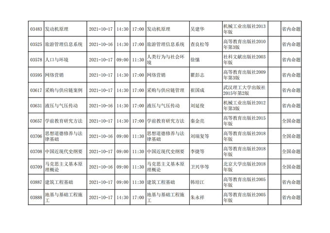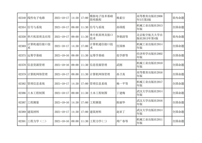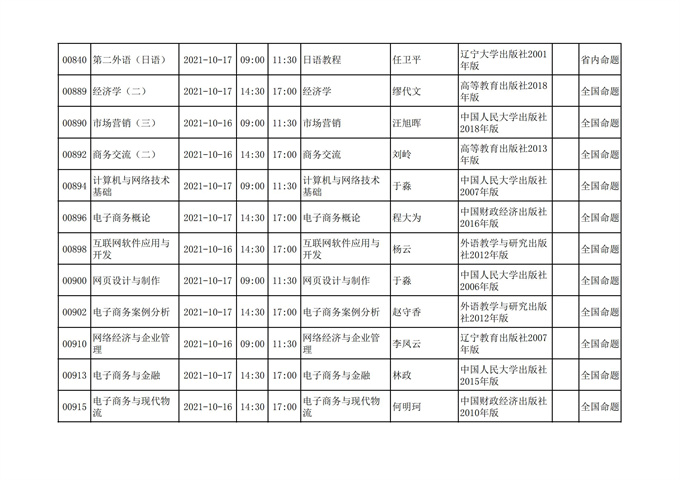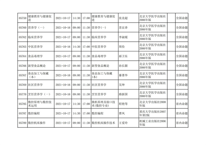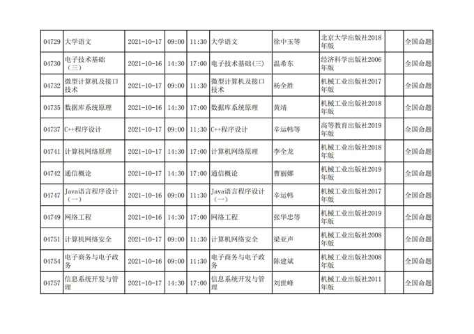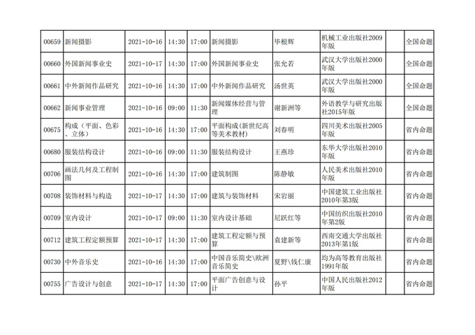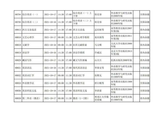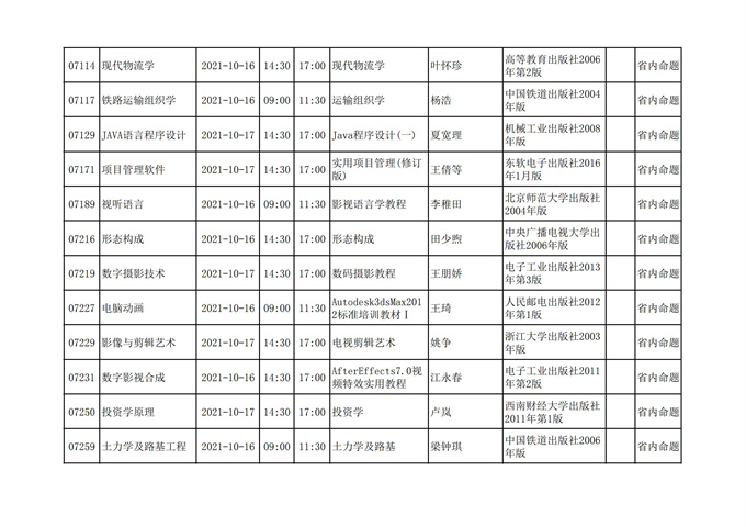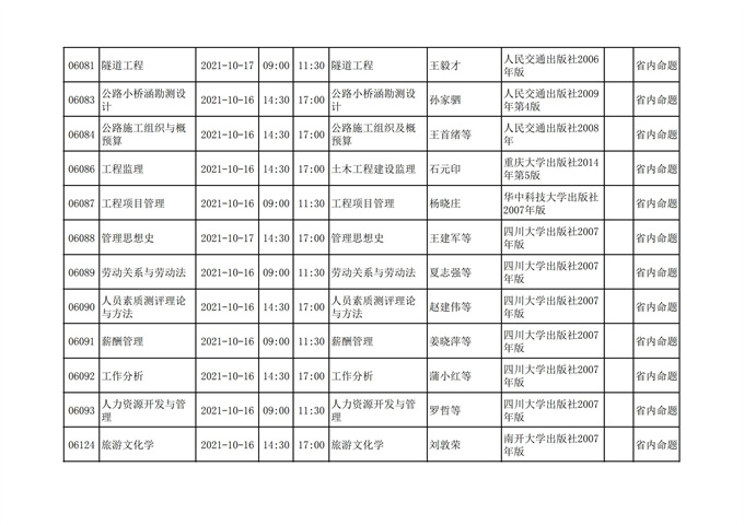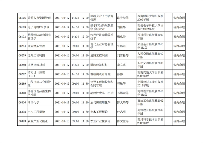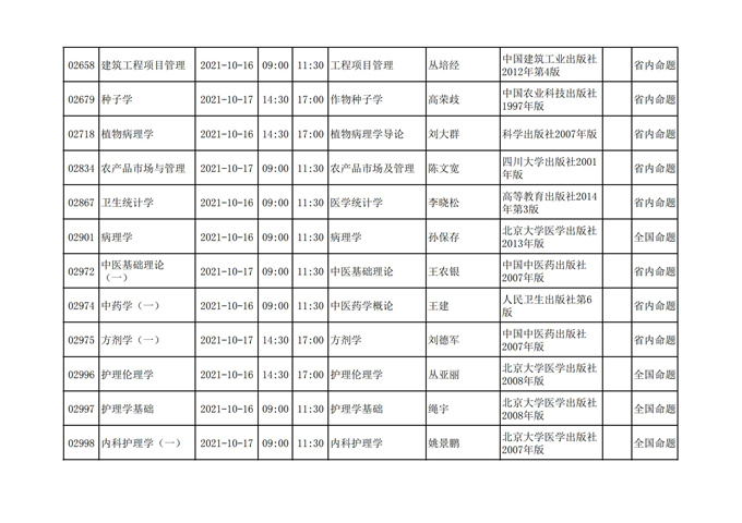 四川省高等教育自学考试212次2021年10月考试课表、课程简表(第1页考试课表,第2页课程简表)