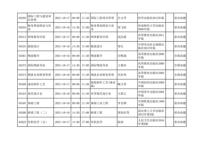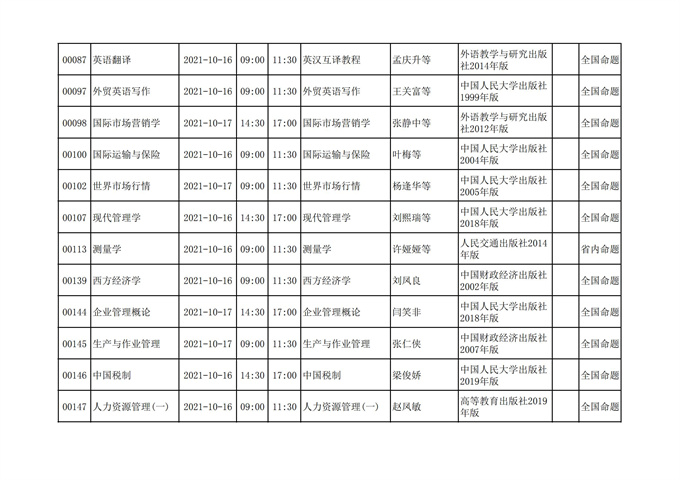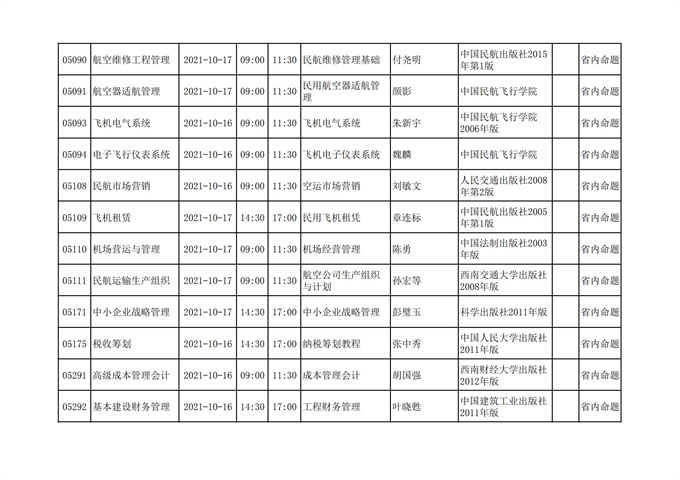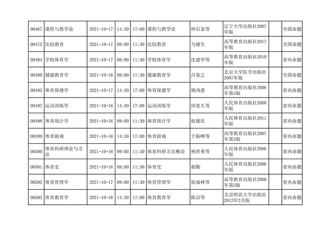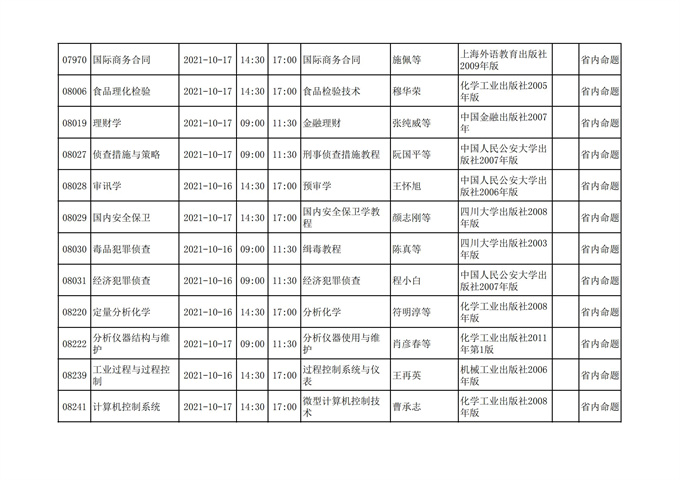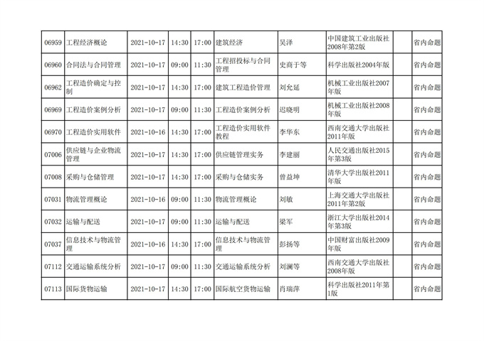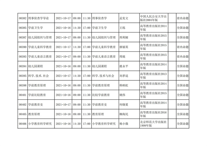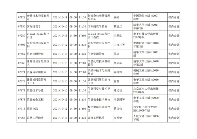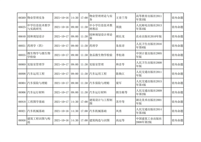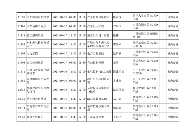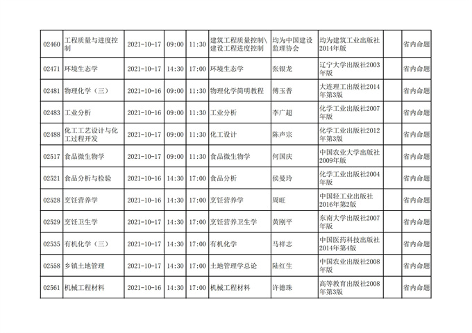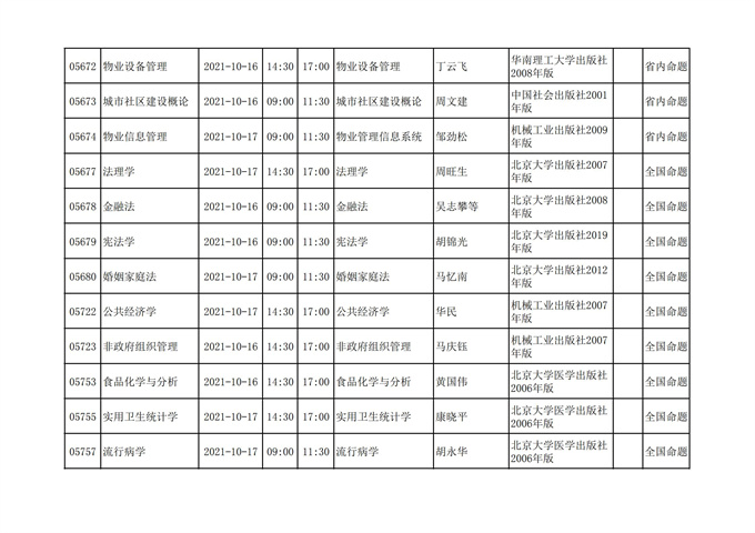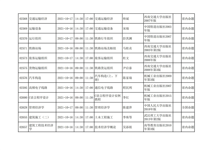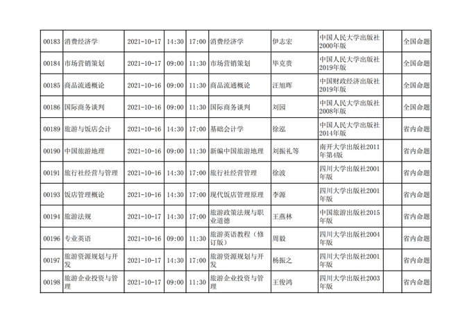 四川省高等教育自学考试212次2021年10月考试课表、课程简表(第1页考试课表,第2页课程简表)