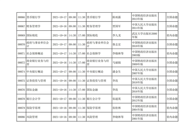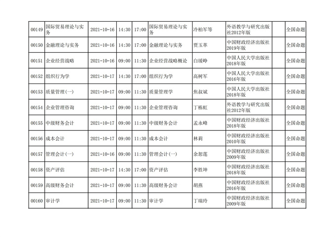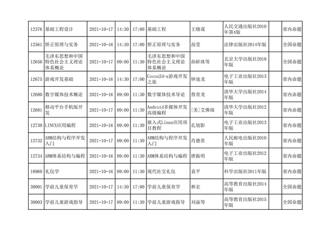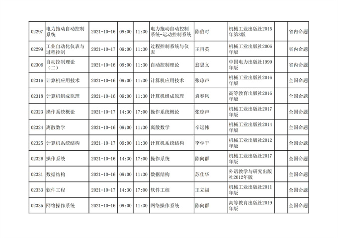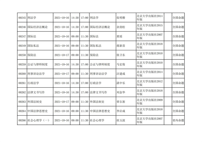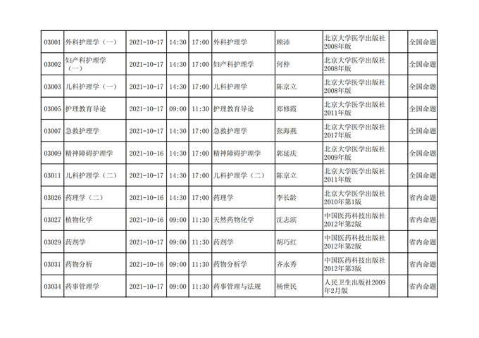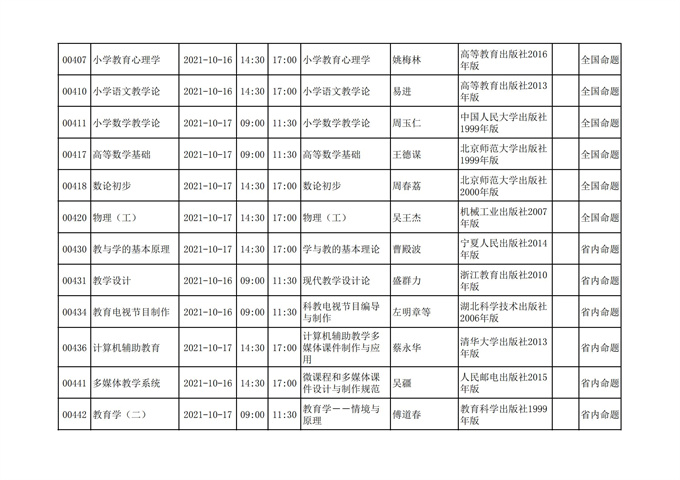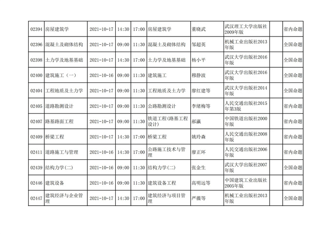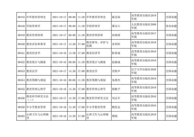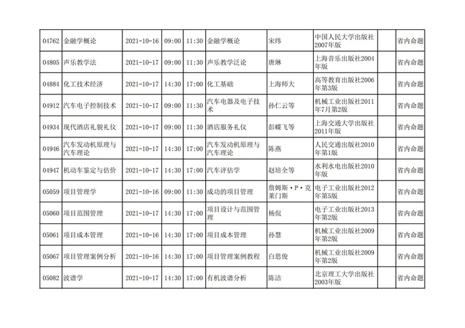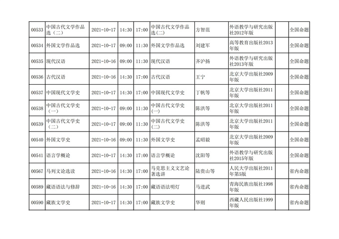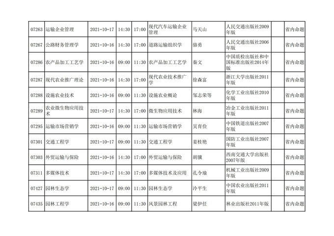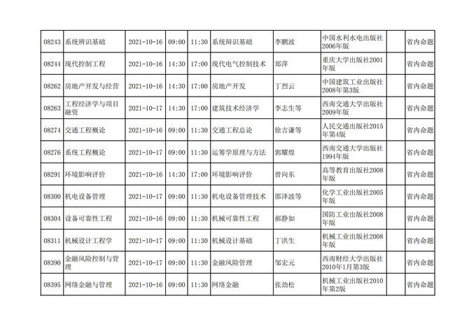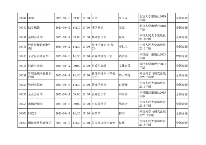 四川省高等教育自学考试212次2021年10月考试课表、课程简表(第1页考试课表,第2页课程简表)